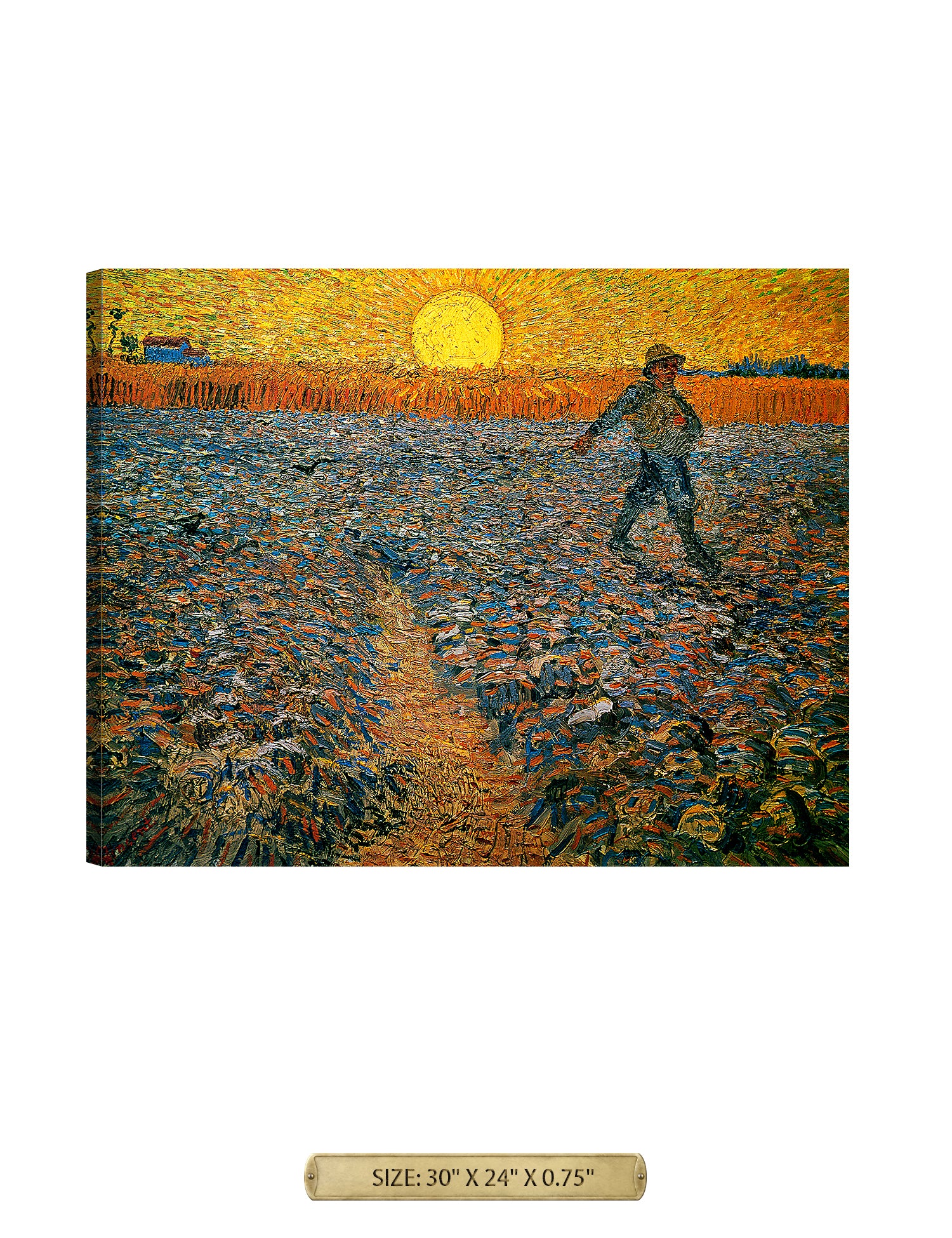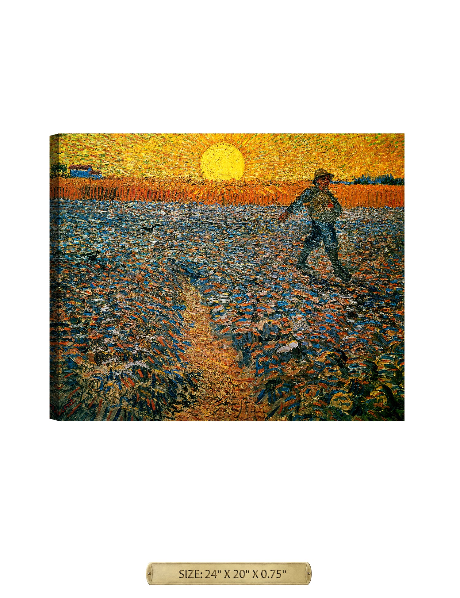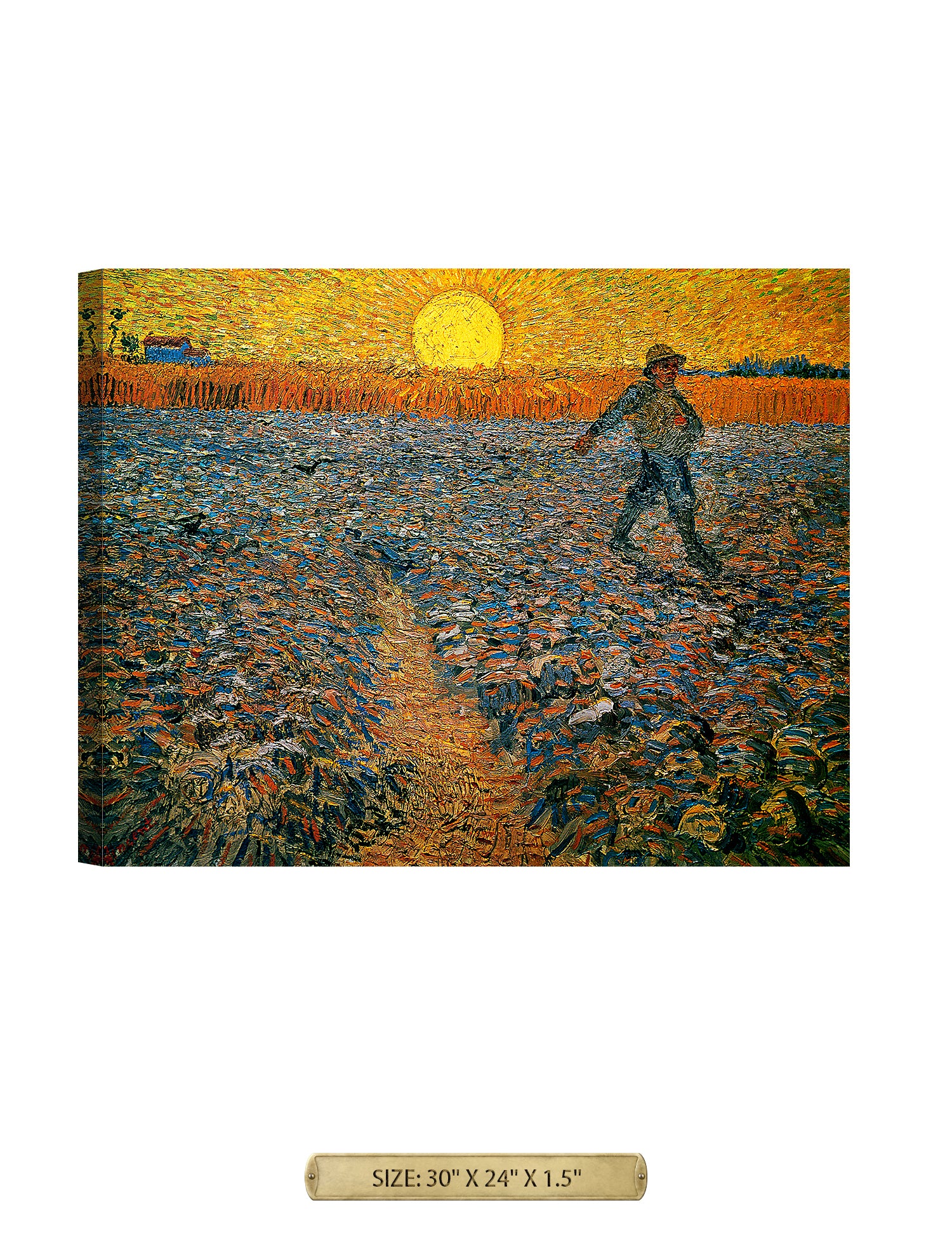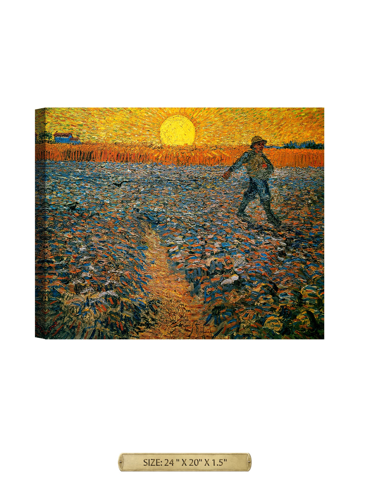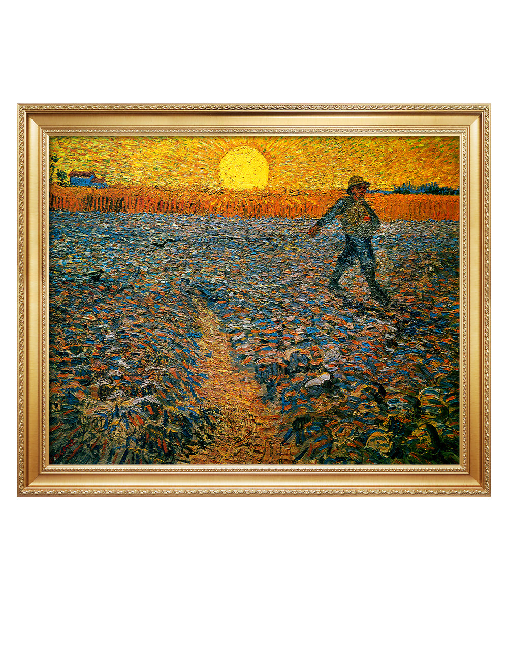 Van Gogh’s example for this painting is The sower from 1850 by French painter Jean-François Millet, whom he admires greatly. He makes dozens of drawings after his great example, but in Arles he wants to paint a new, ‘modern’ version. Not dark, grey and without much colour, like Millet, but with radiant colours and sharp contrasts.