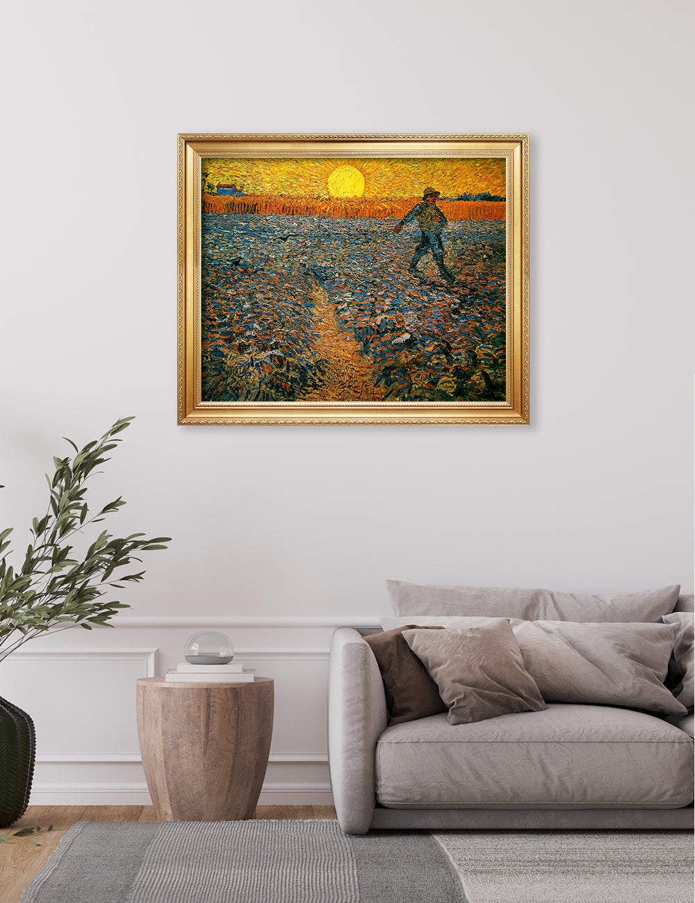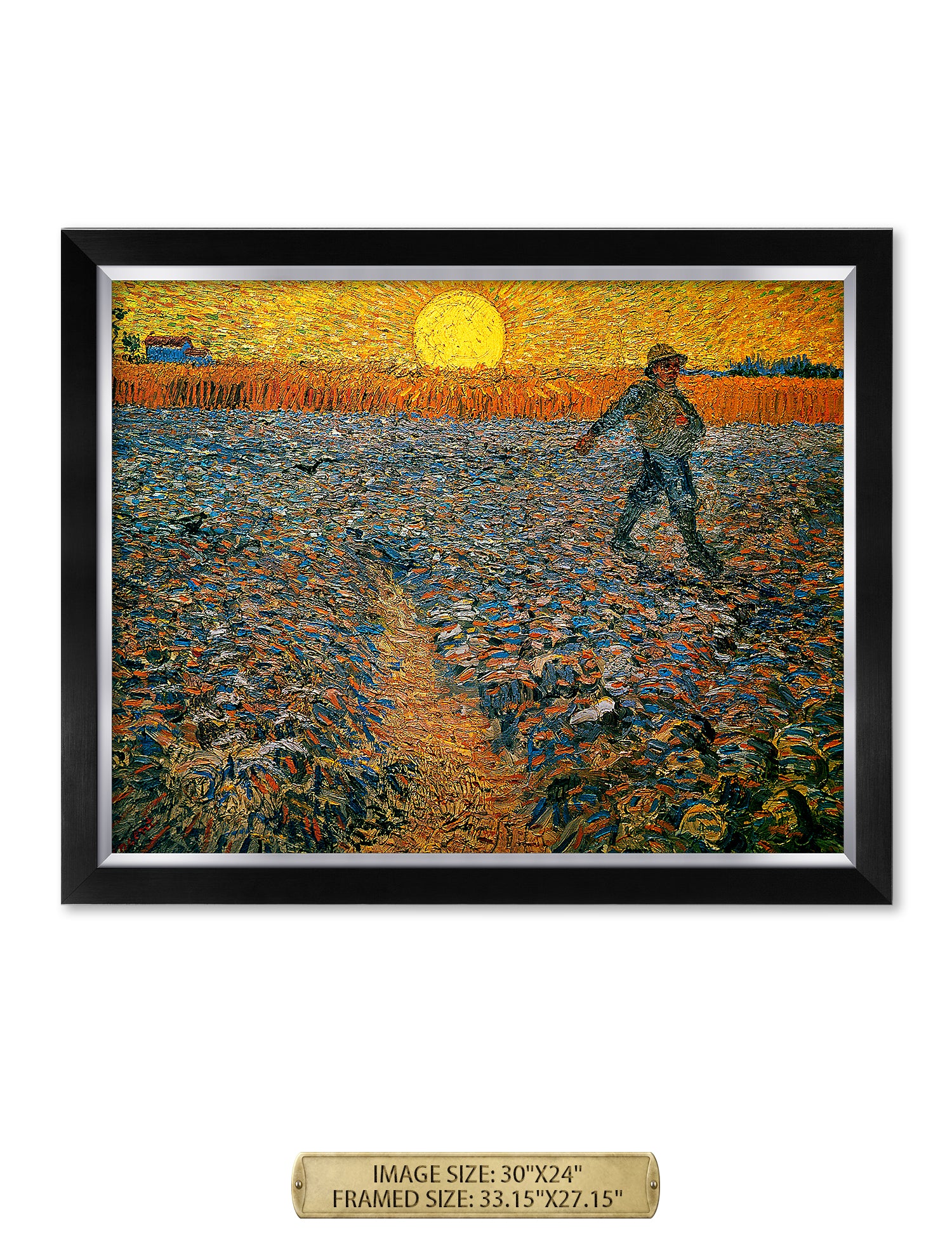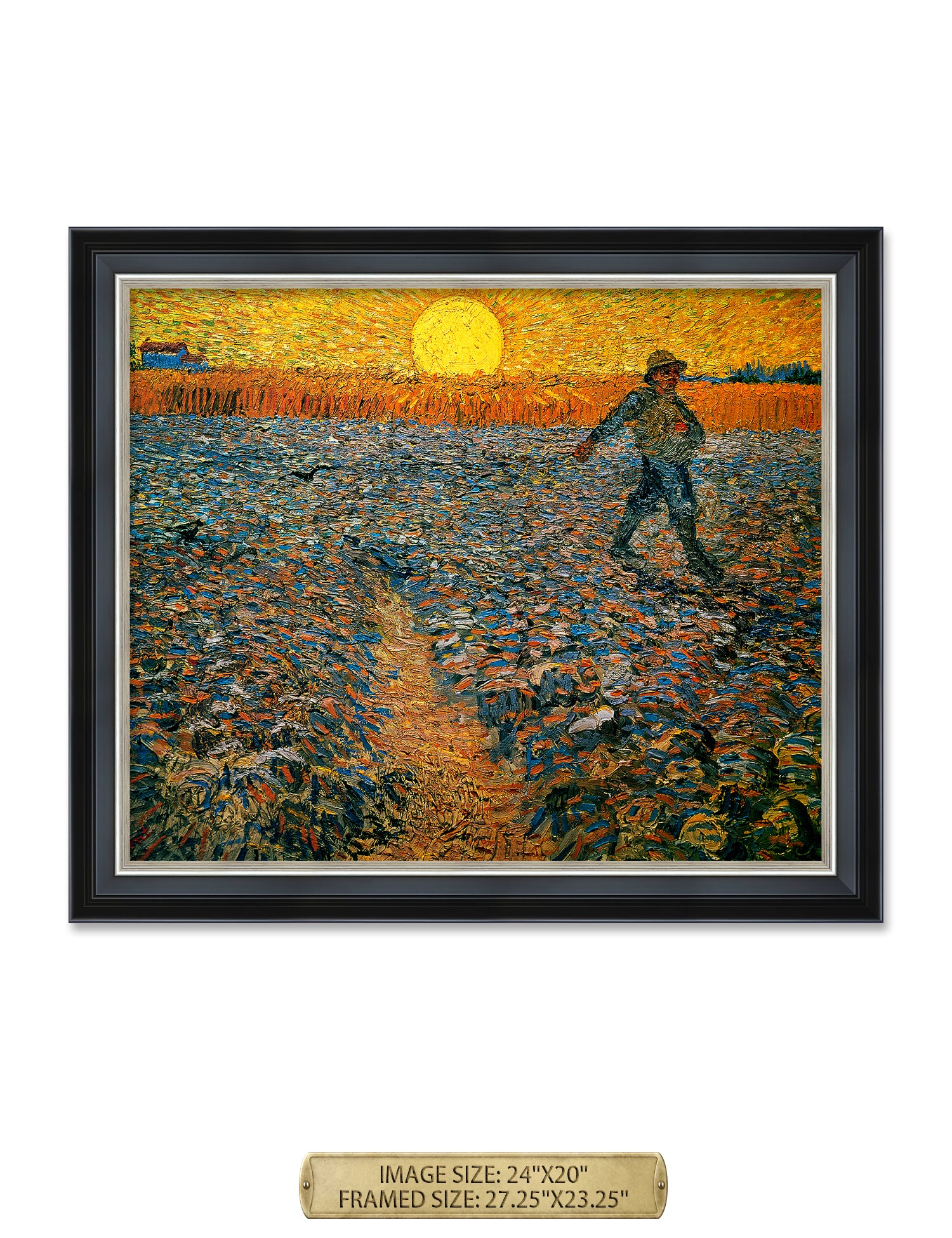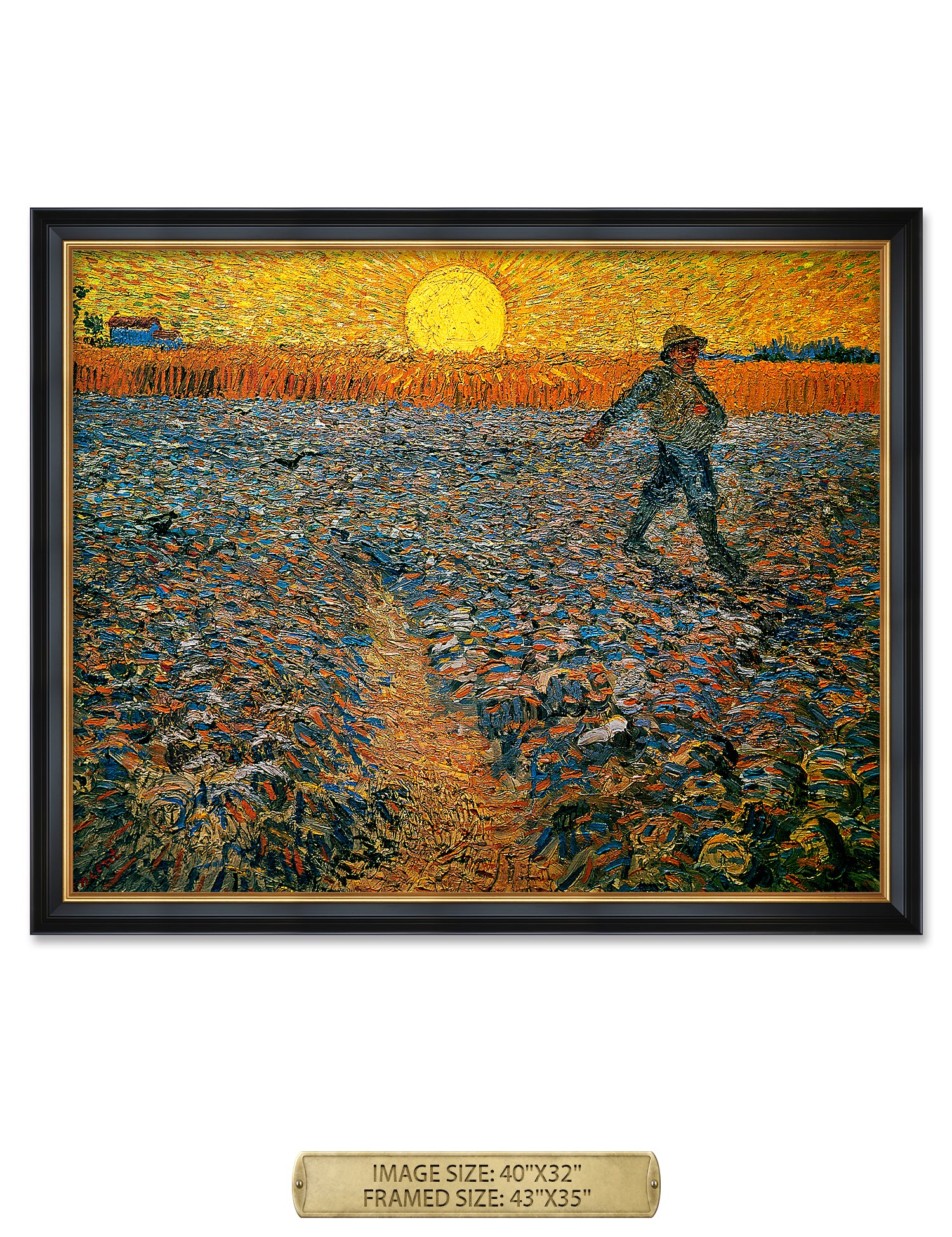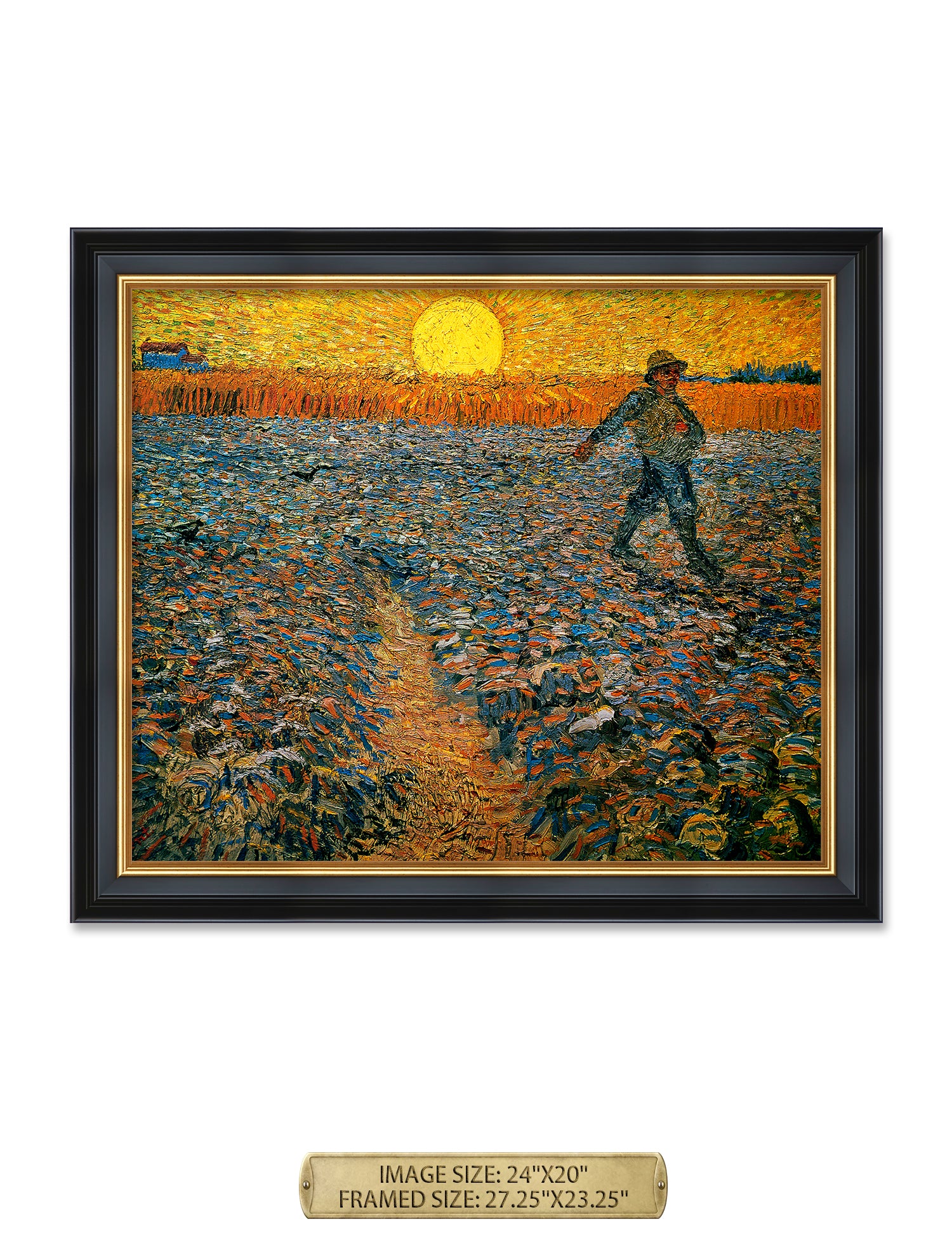 Van Gogh’s example for this painting is The sower from 1850 by French painter Jean-François Millet, whom he admires greatly. He makes dozens of drawings after his great example, but in Arles he wants to paint a new, ‘modern’ version. Not dark, grey and without much colour, like Millet, but with radiant colours and sharp contrasts.