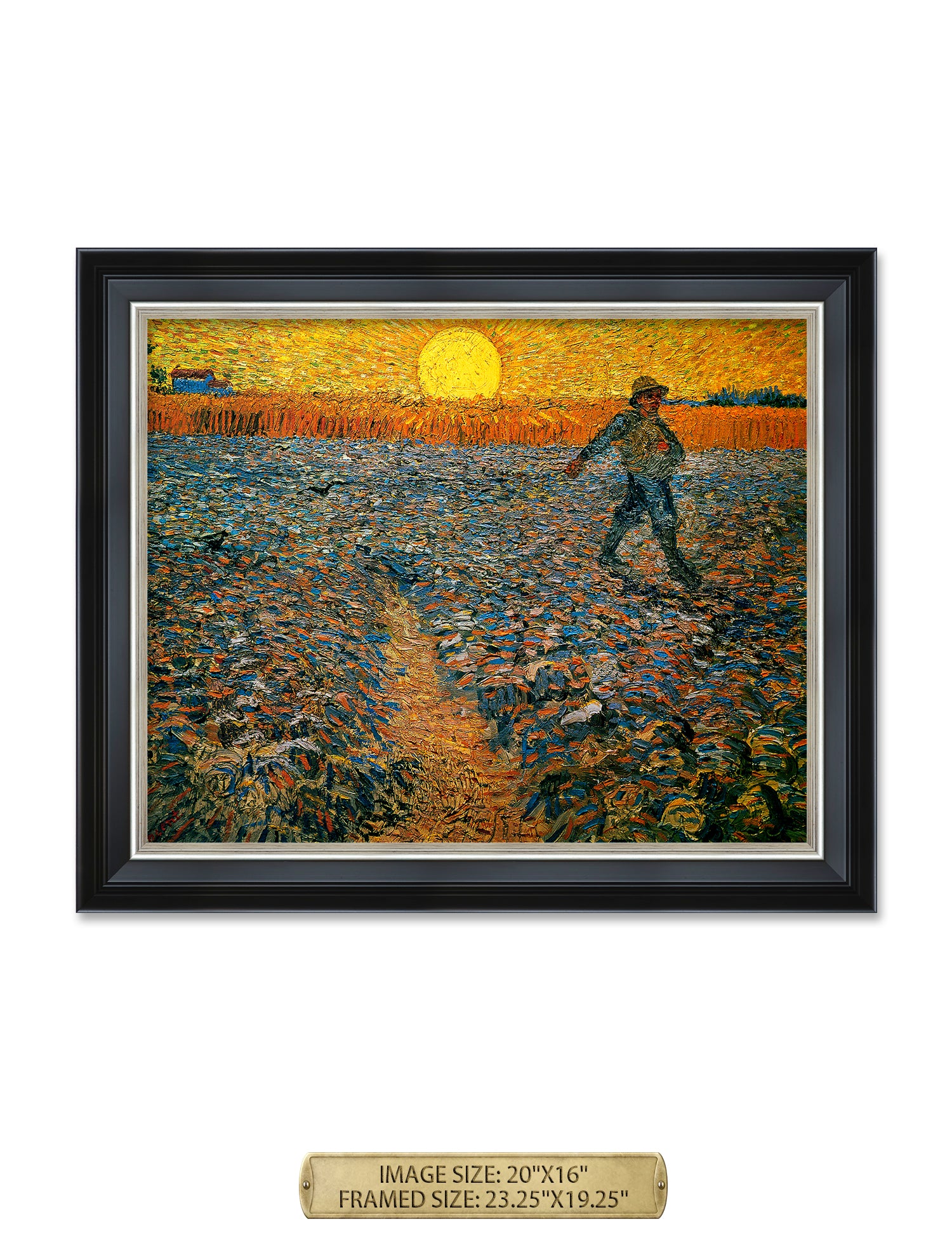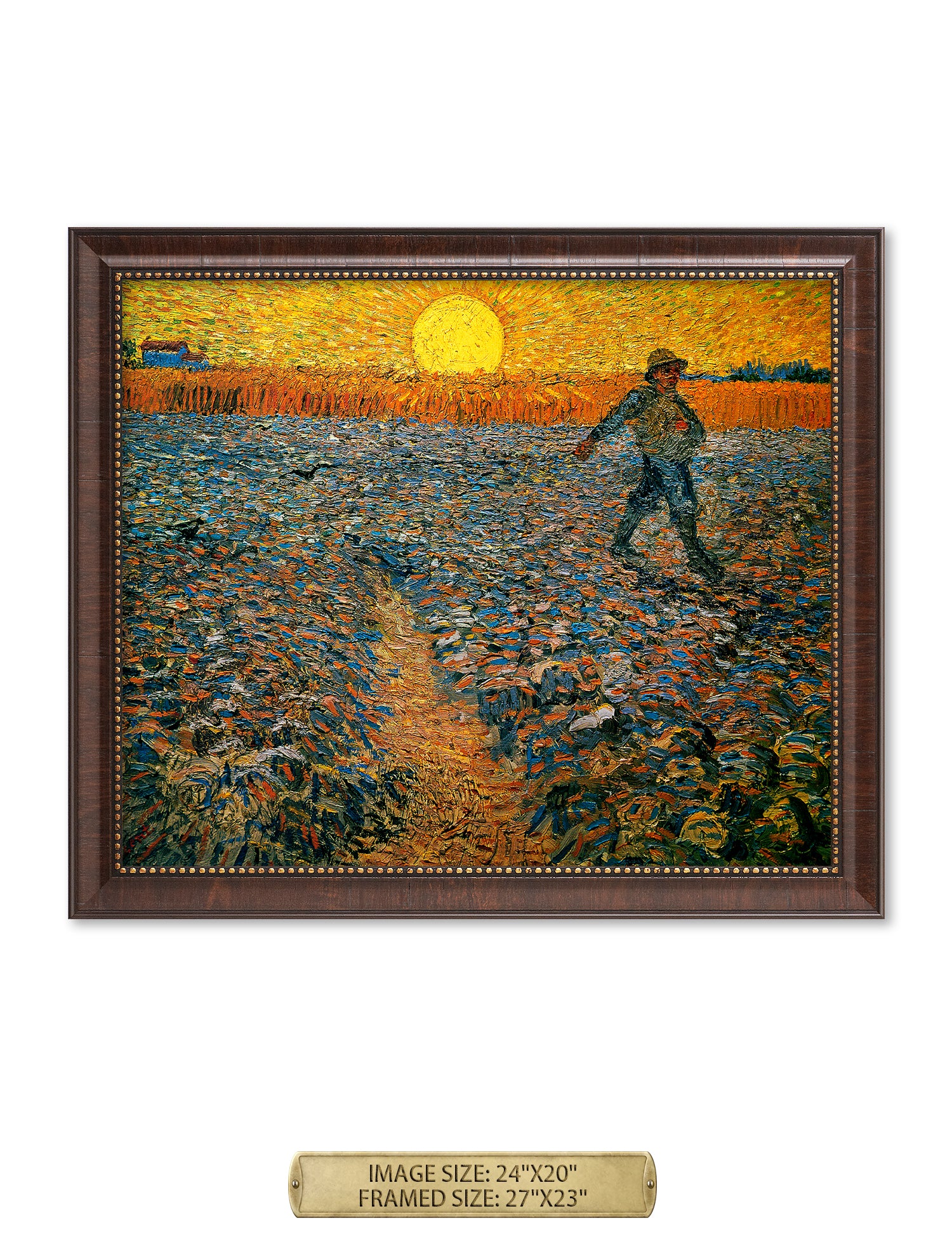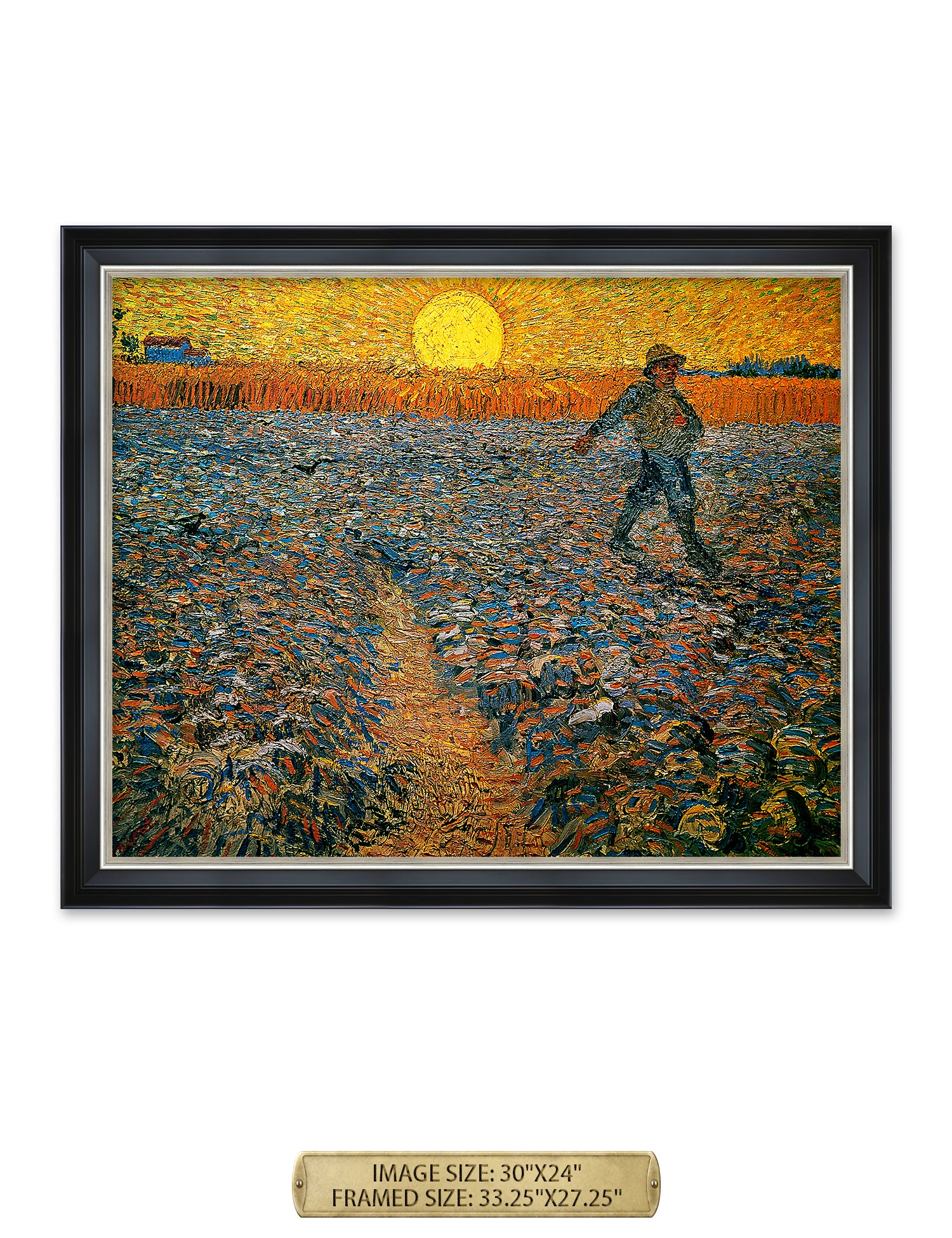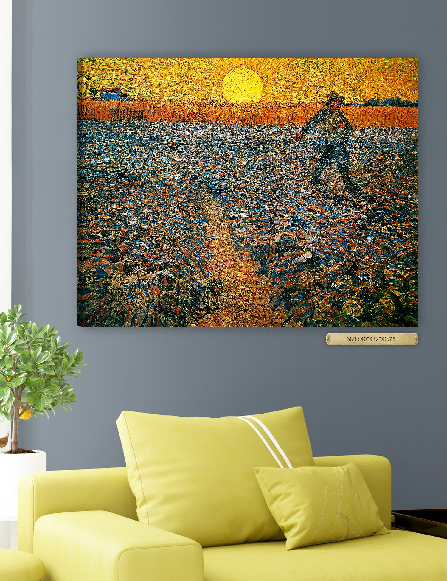Van Gogh’s example for this painting is The sower from 1850 by French painter Jean-François Millet, whom he admires greatly. He makes dozens of drawings after his great example, but in Arles he wants to paint a new, ‘modern’ version. Not dark, grey and without much colour, like Millet, but with radiant colours and sharp contrasts.