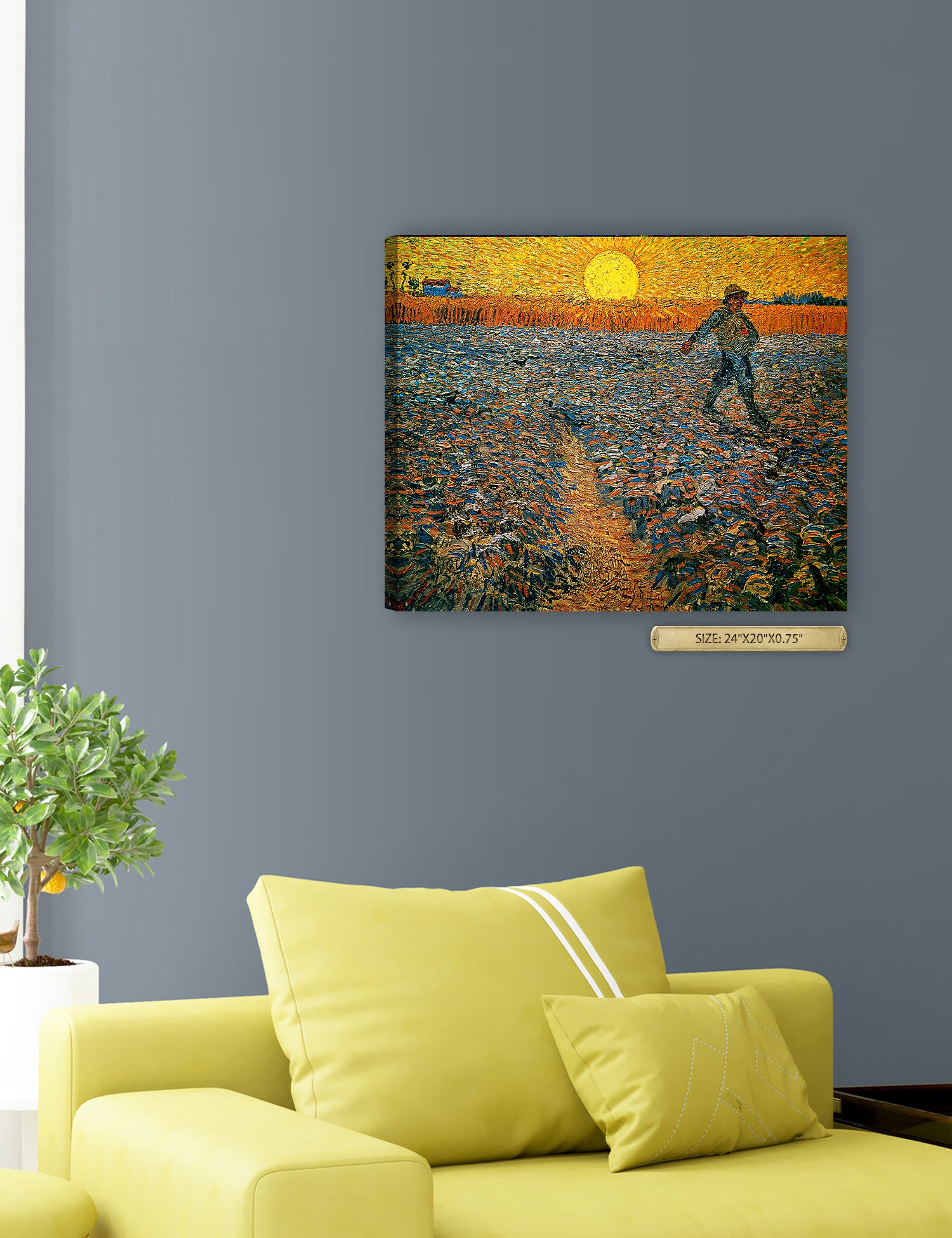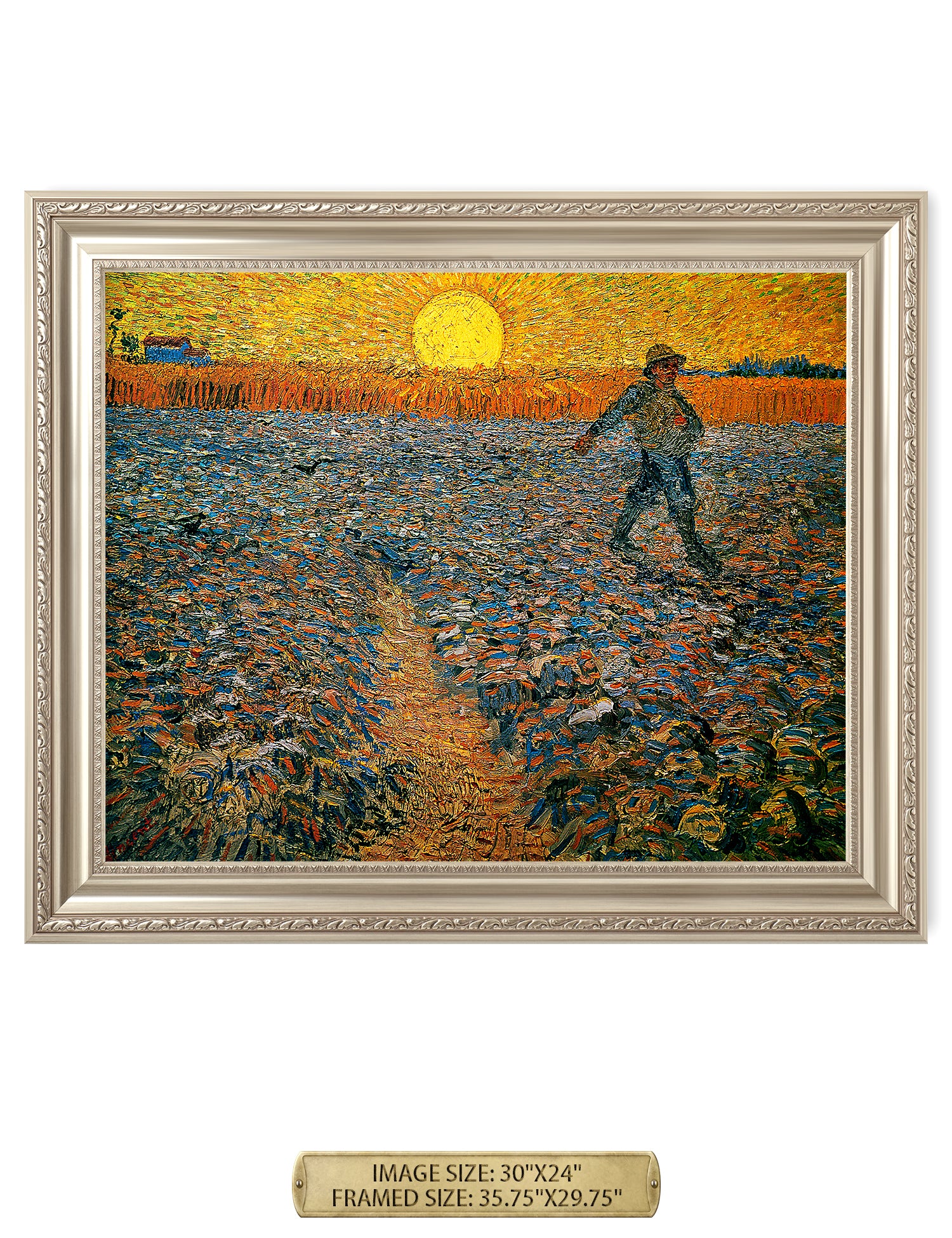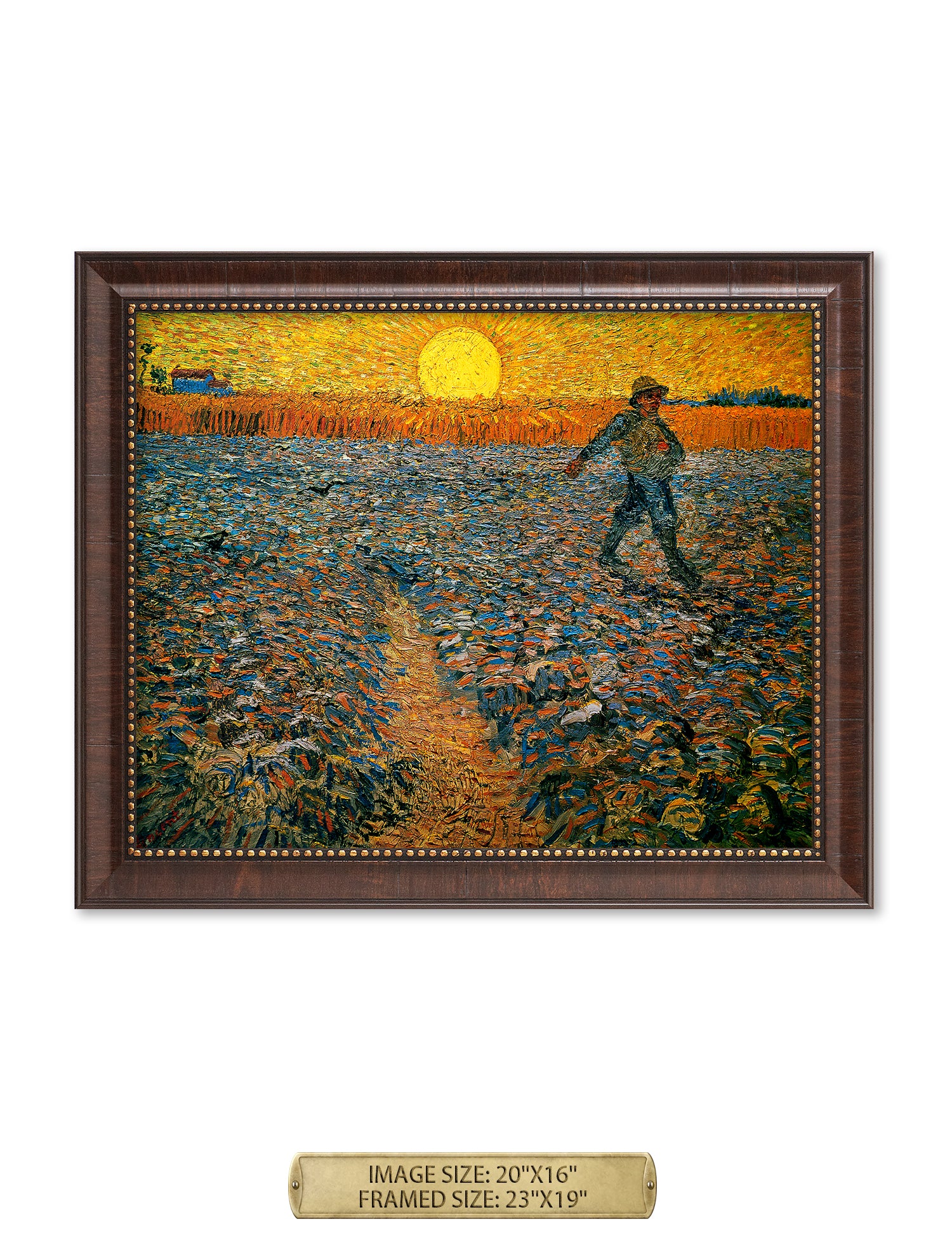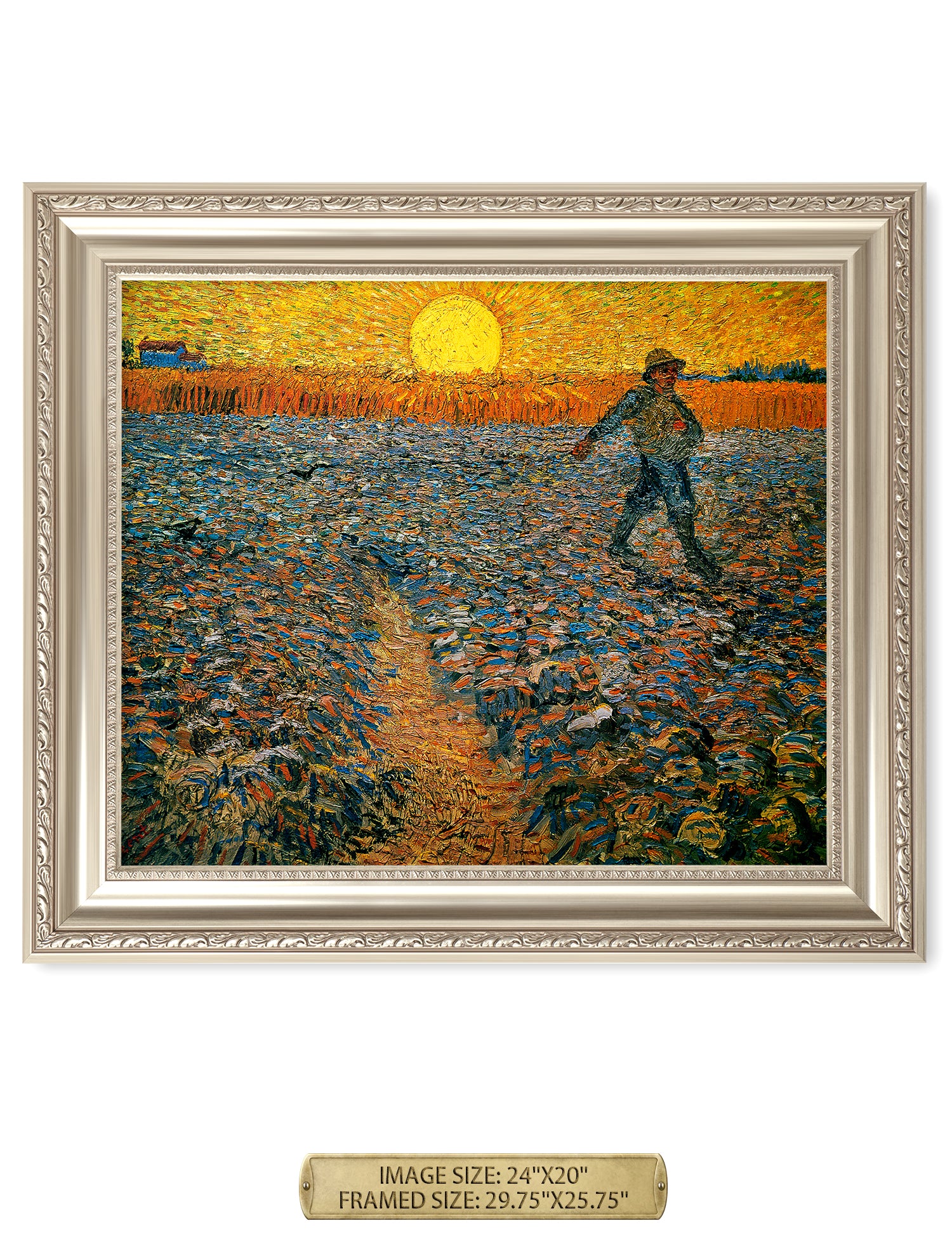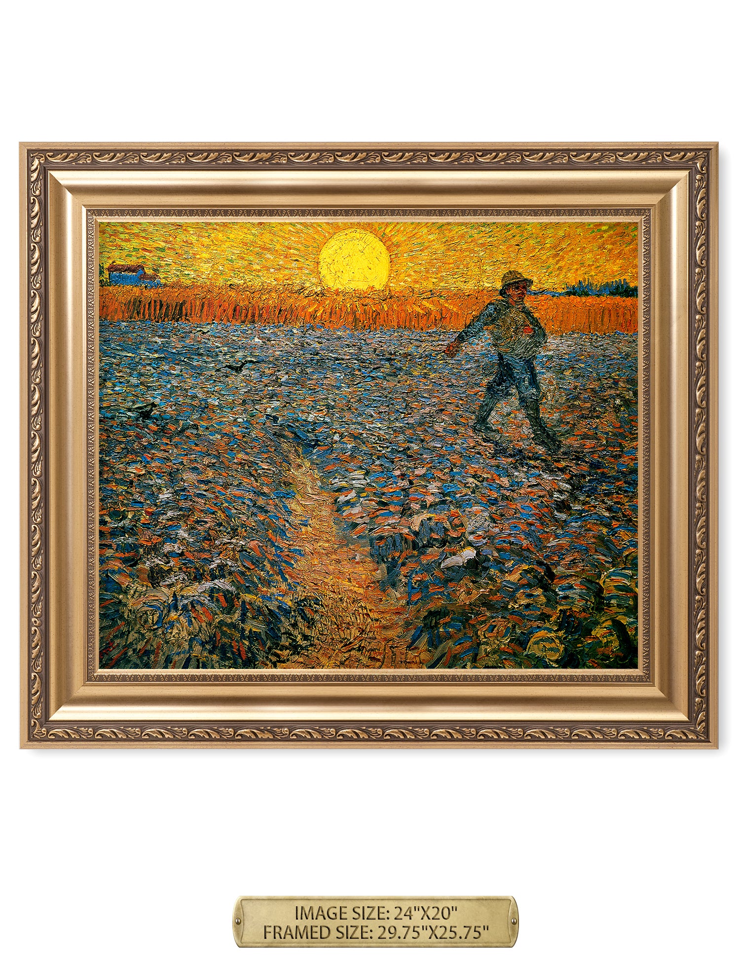Van Gogh’s example for this painting is The sower from 1850 by French painter Jean-François Millet, whom he admires greatly. He makes dozens of drawings after his great example, but in Arles he wants to paint a new, ‘modern’ version. Not dark, grey and without much colour, like Millet, but with radiant colours and sharp contrasts.