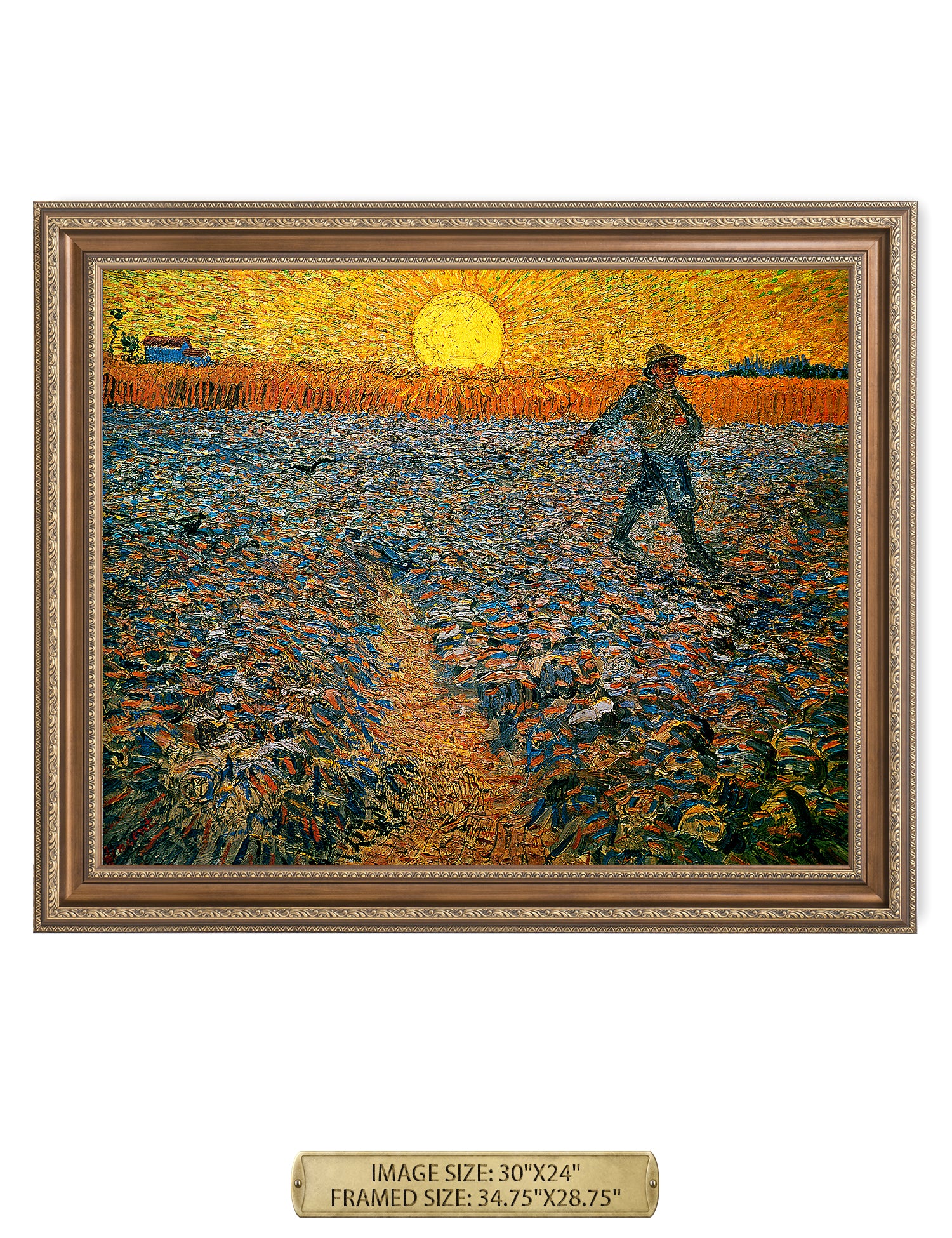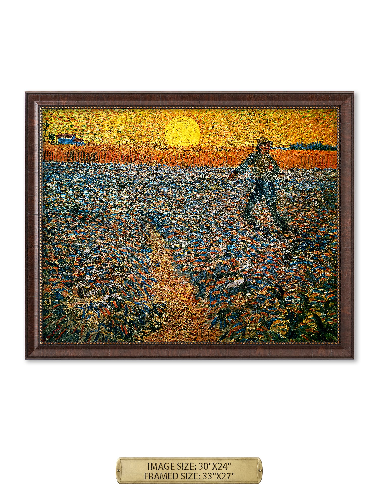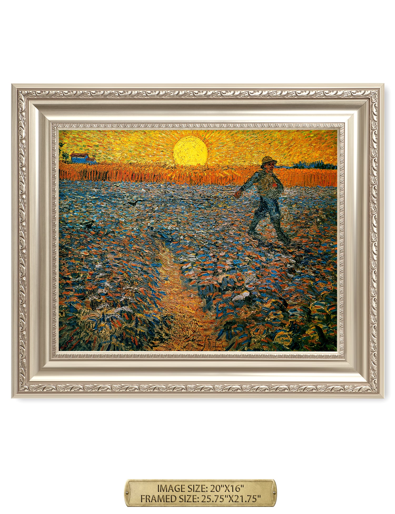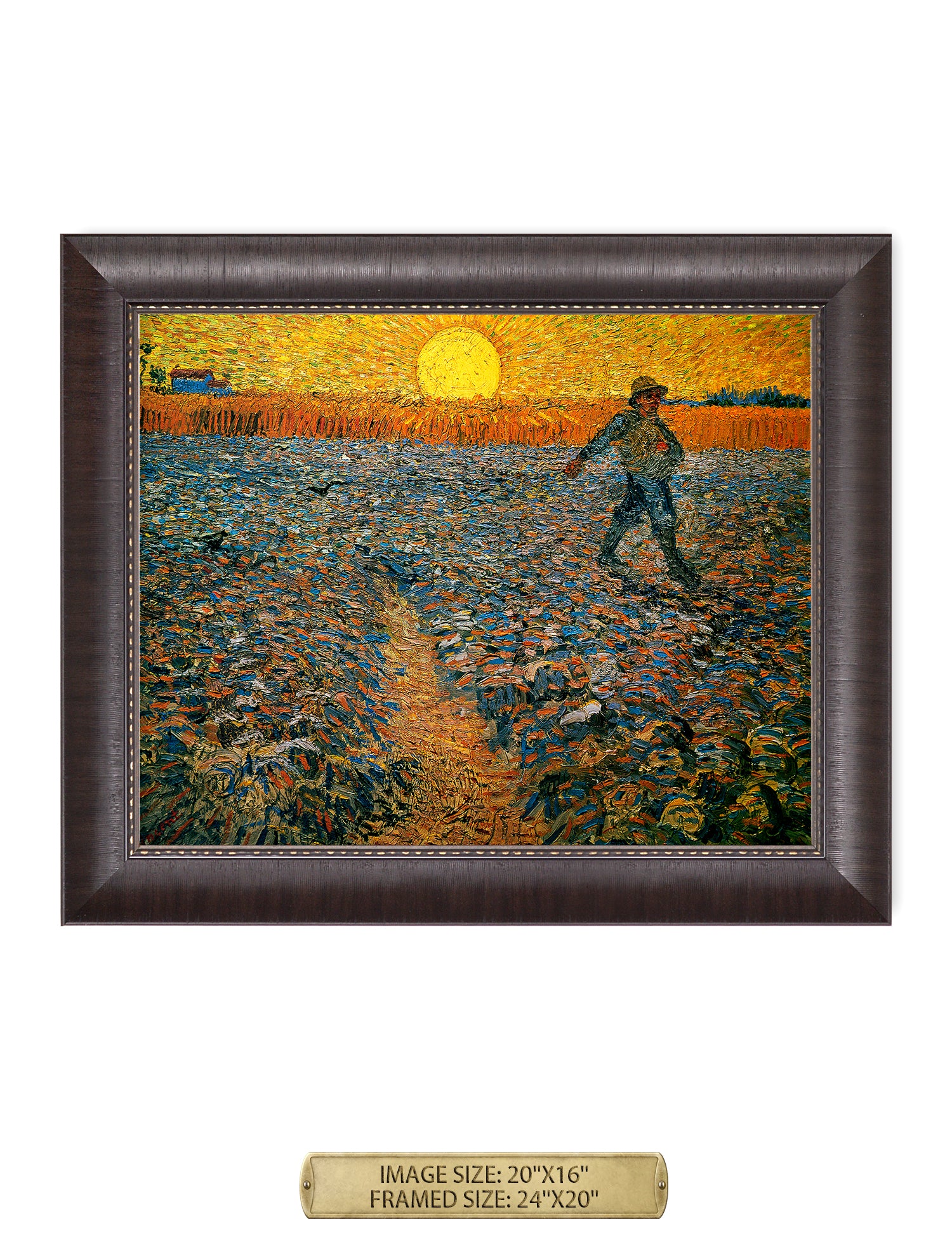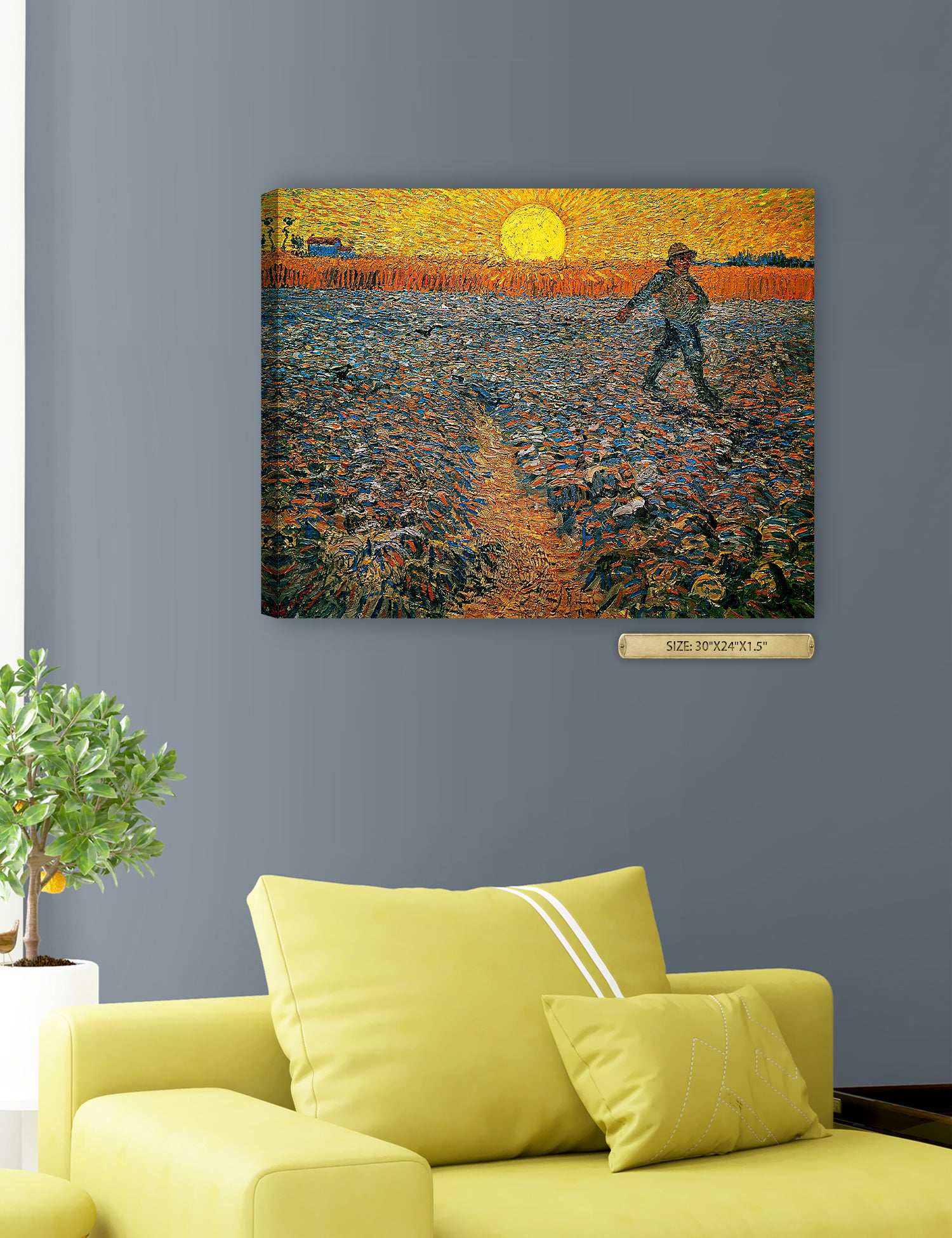 Van Gogh’s example for this painting is The sower from 1850 by French painter Jean-François Millet, whom he admires greatly. He makes dozens of drawings after his great example, but in Arles he wants to paint a new, ‘modern’ version. Not dark, grey and without much colour, like Millet, but with radiant colours and sharp contrasts.