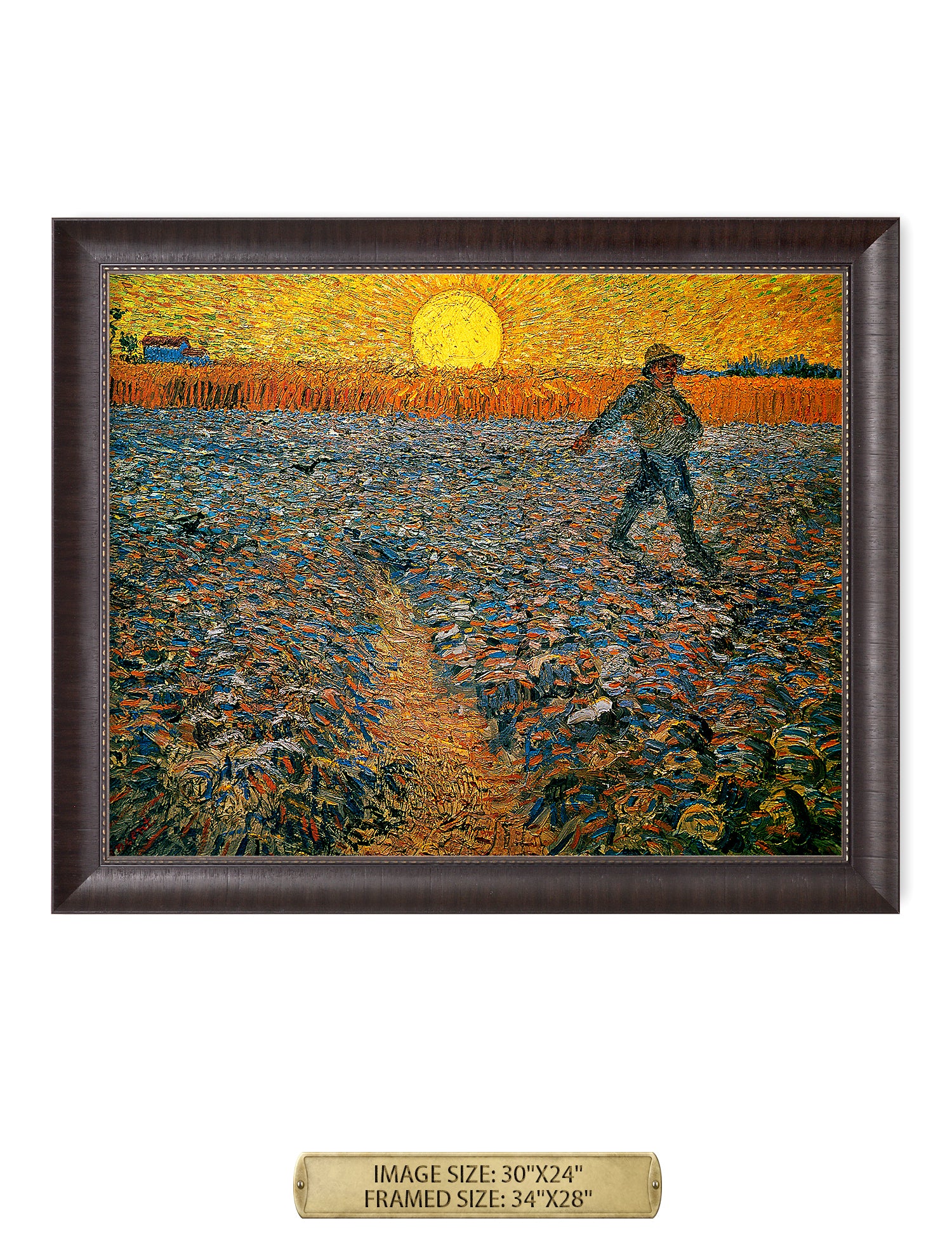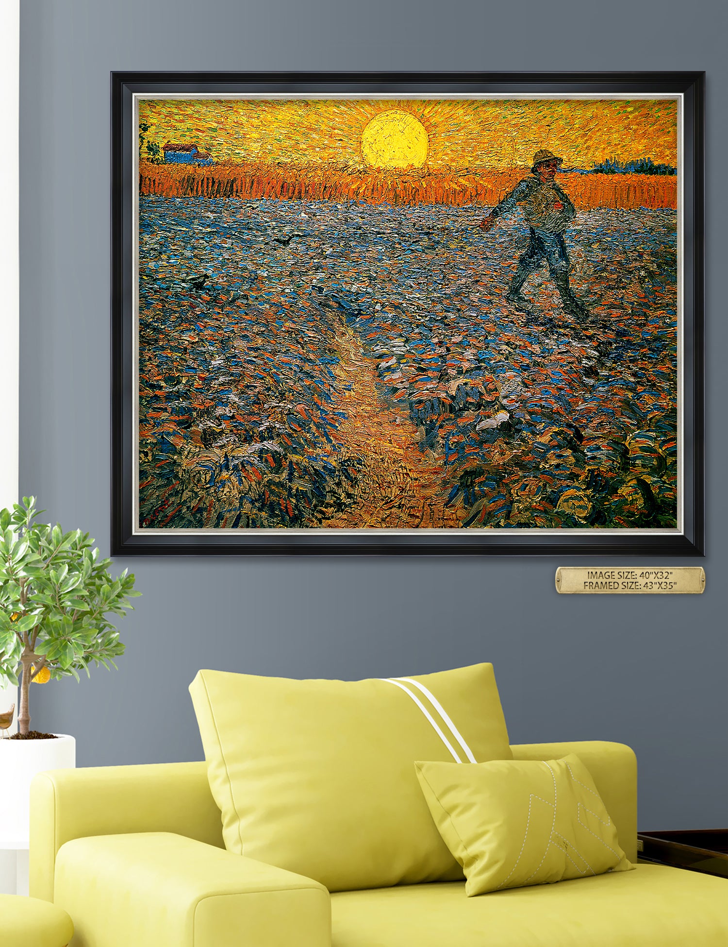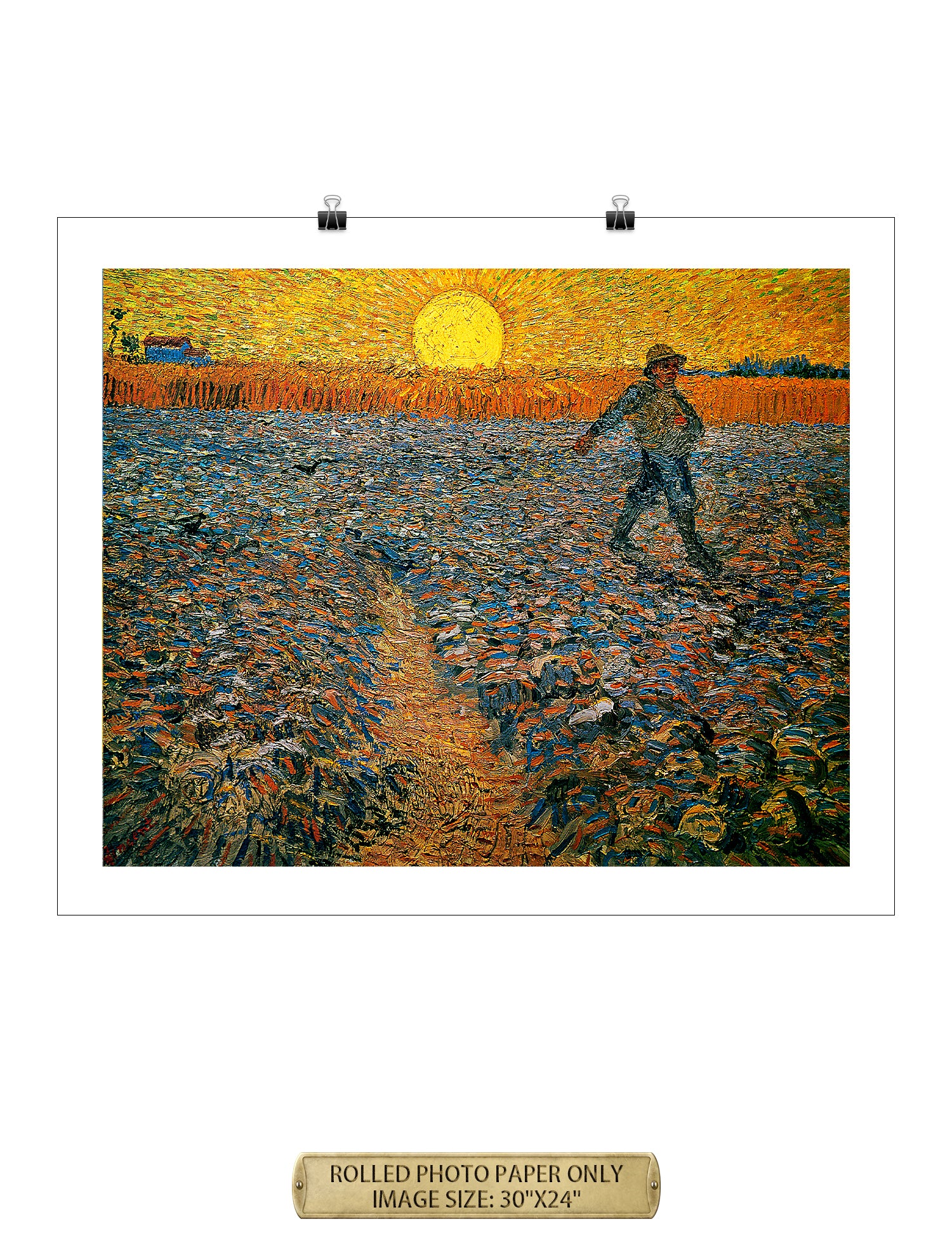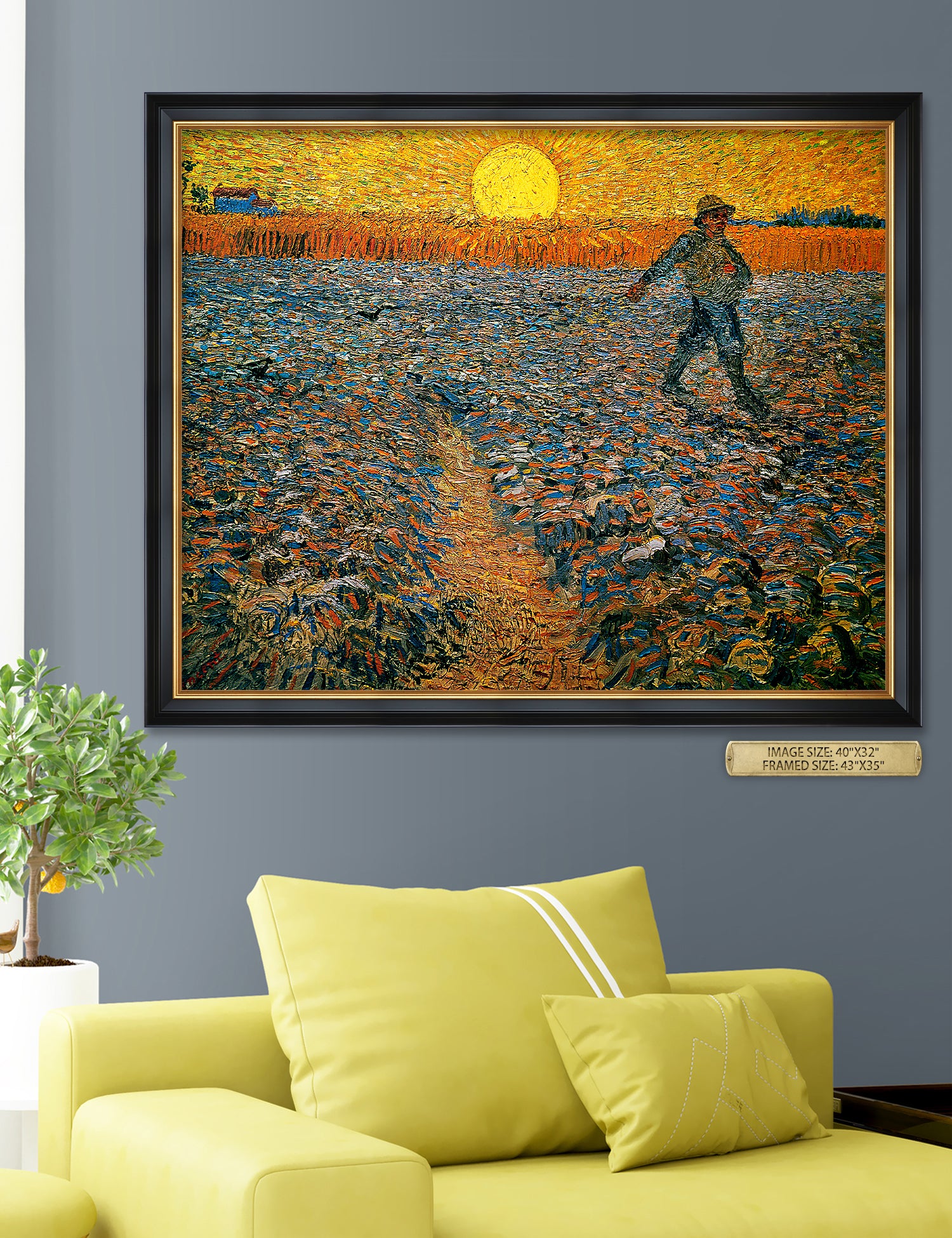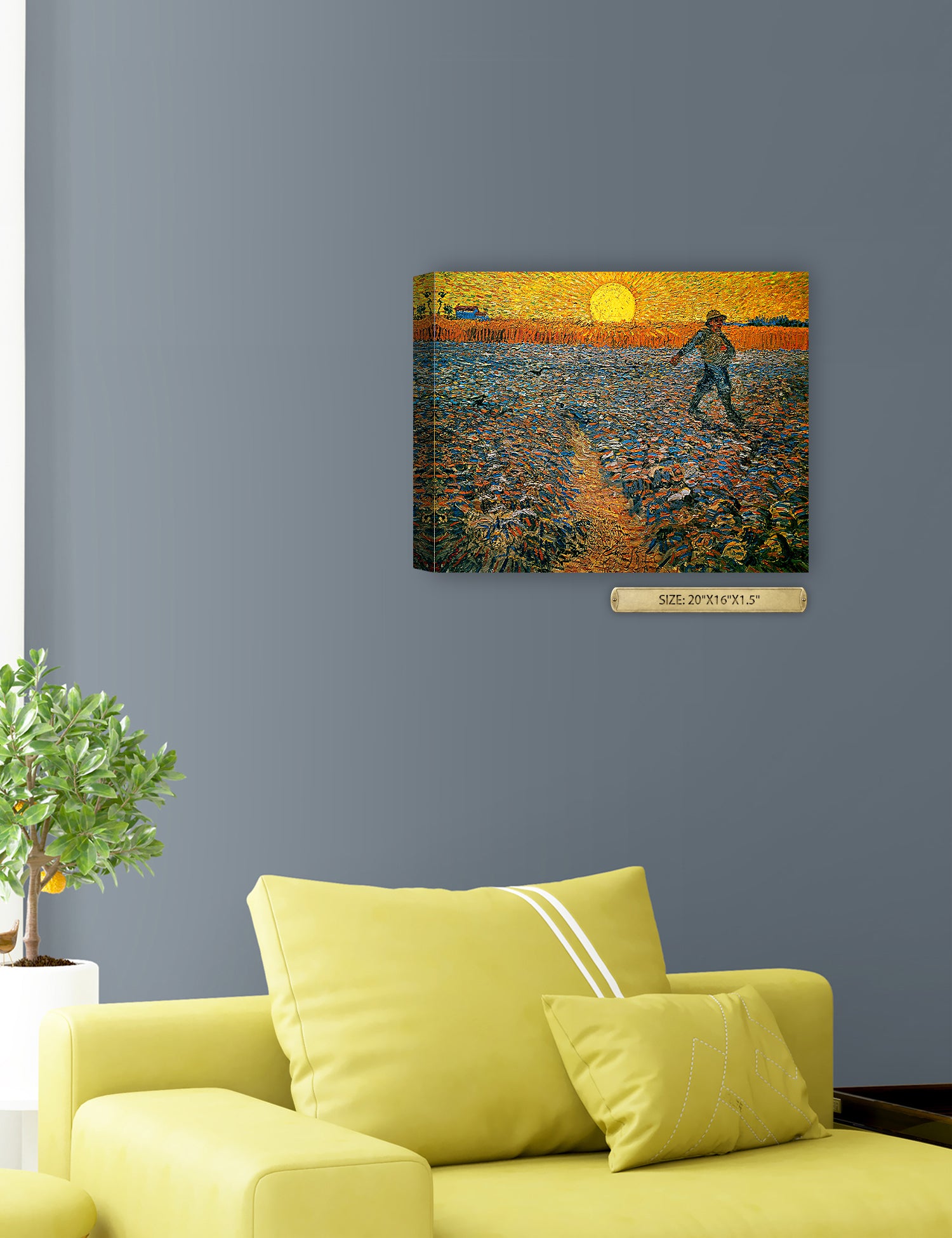 Van Gogh’s example for this painting is The sower from 1850 by French painter Jean-François Millet, whom he admires greatly. He makes dozens of drawings after his great example, but in Arles he wants to paint a new, ‘modern’ version. Not dark, grey and without much colour, like Millet, but with radiant colours and sharp contrasts.