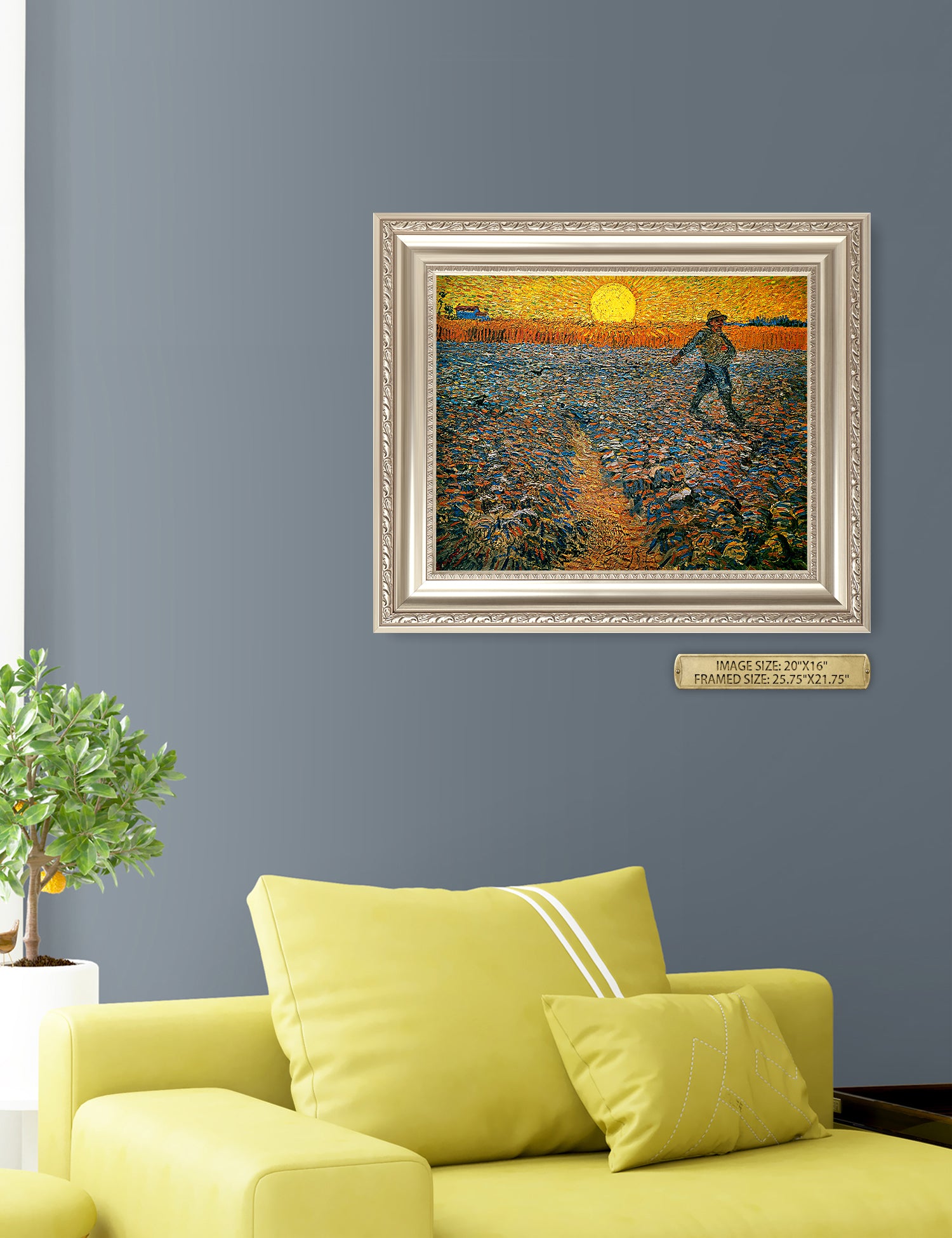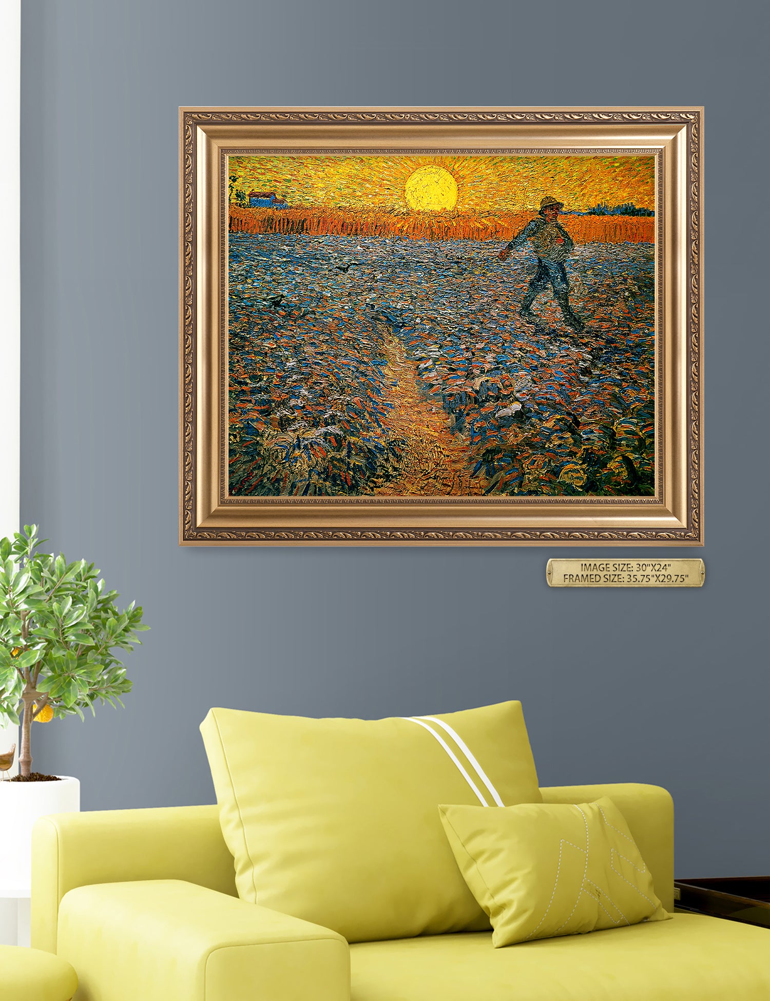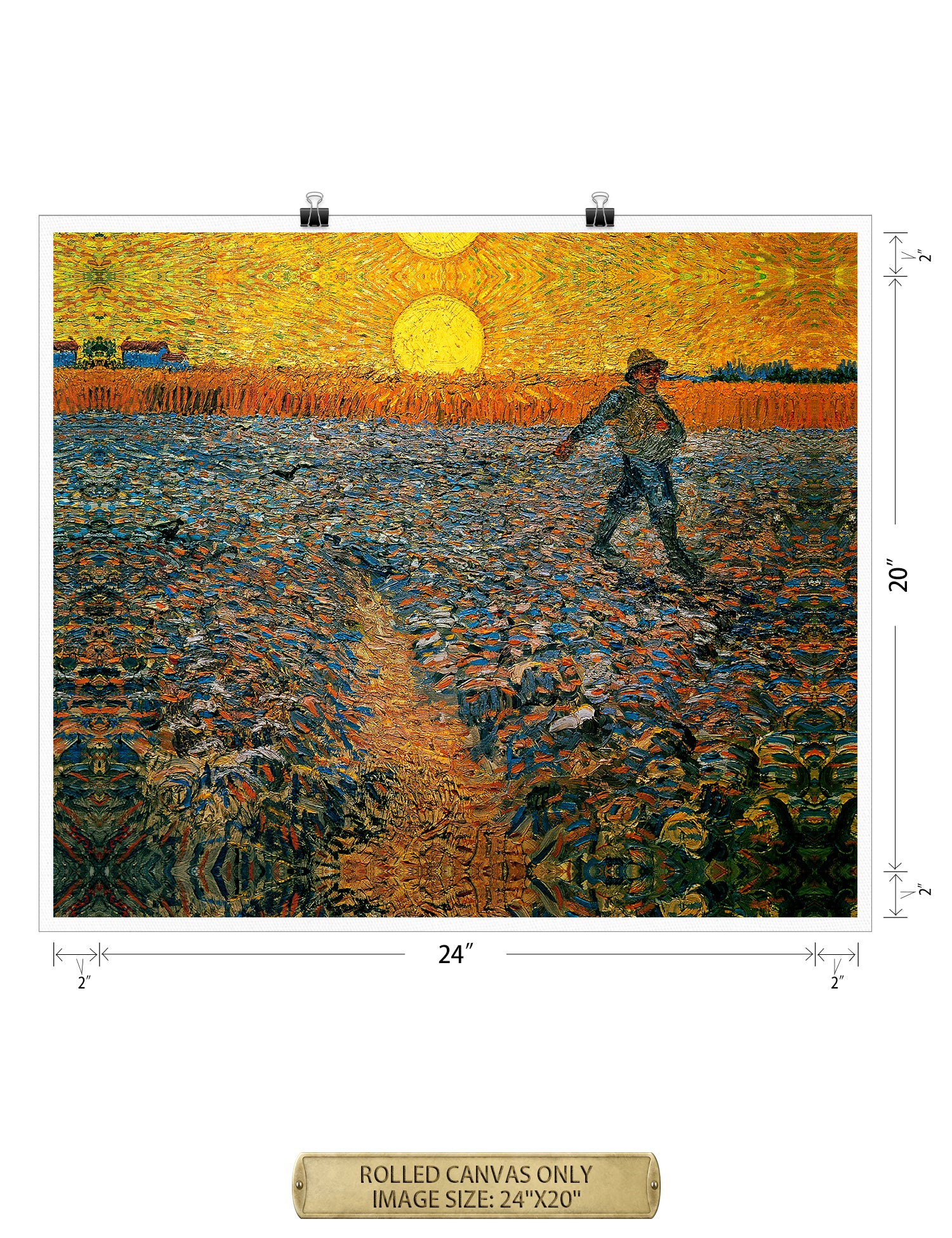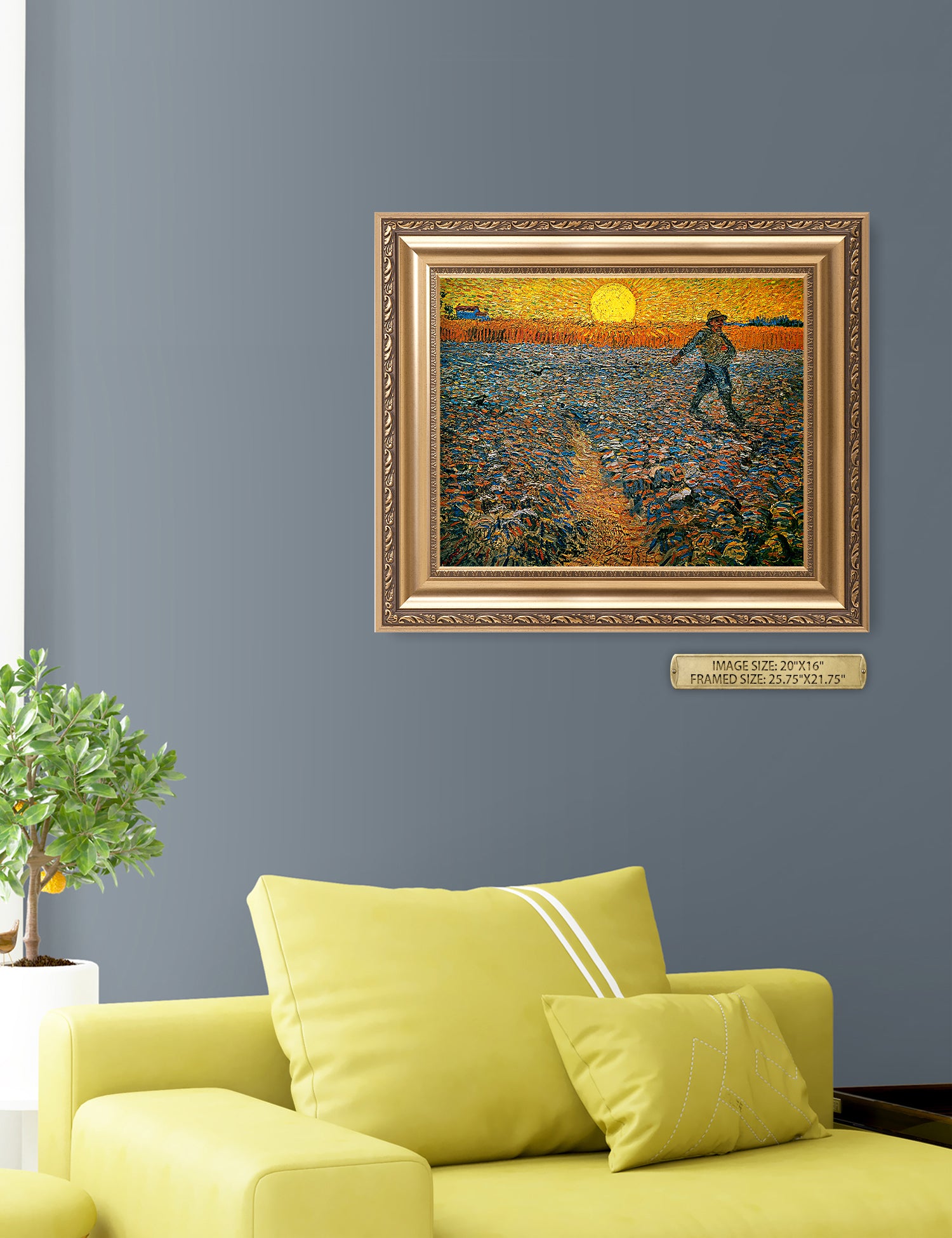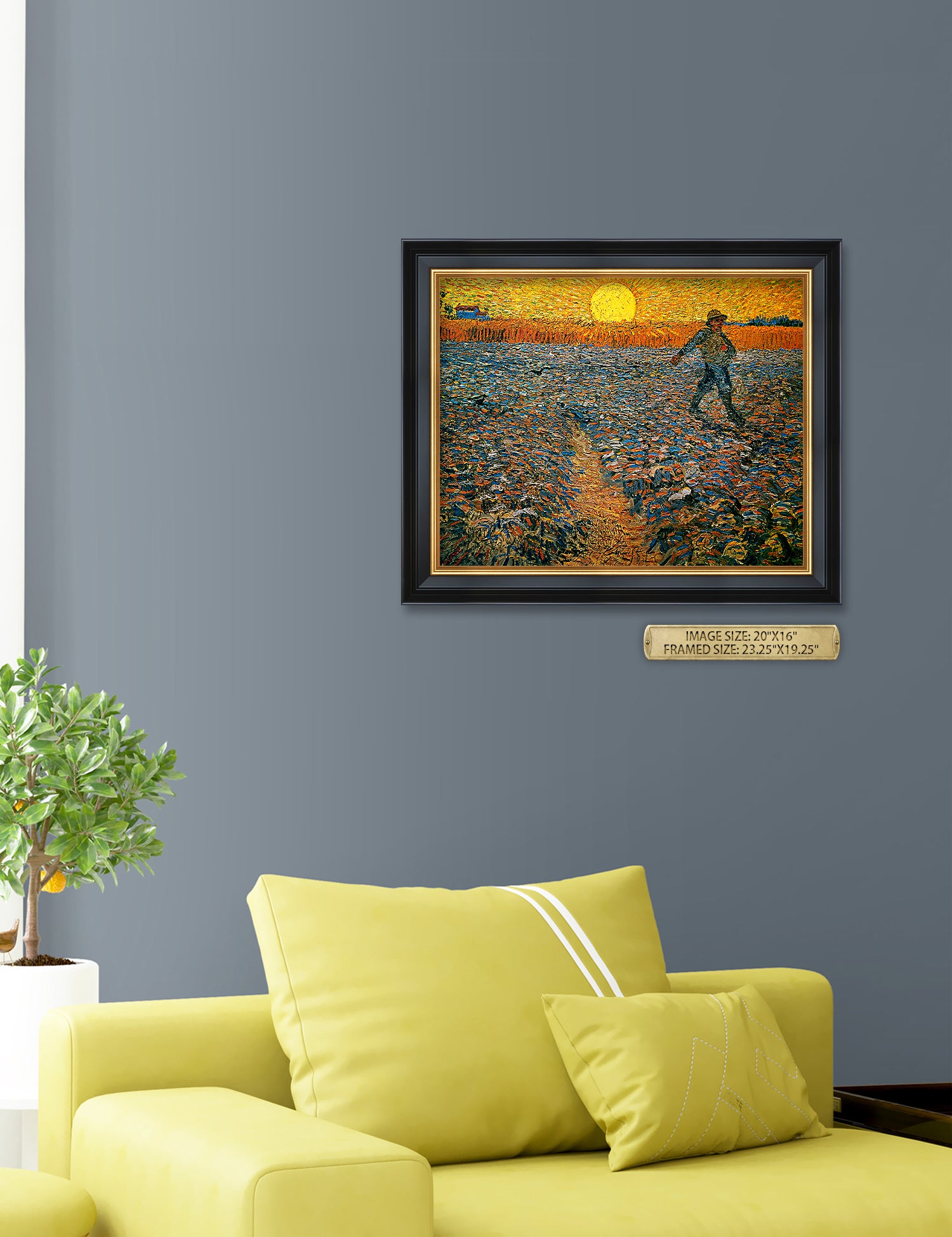 Van Gogh’s example for this painting is The sower from 1850 by French painter Jean-François Millet, whom he admires greatly. He makes dozens of drawings after his great example, but in Arles he wants to paint a new, ‘modern’ version. Not dark, grey and without much colour, like Millet, but with radiant colours and sharp contrasts.