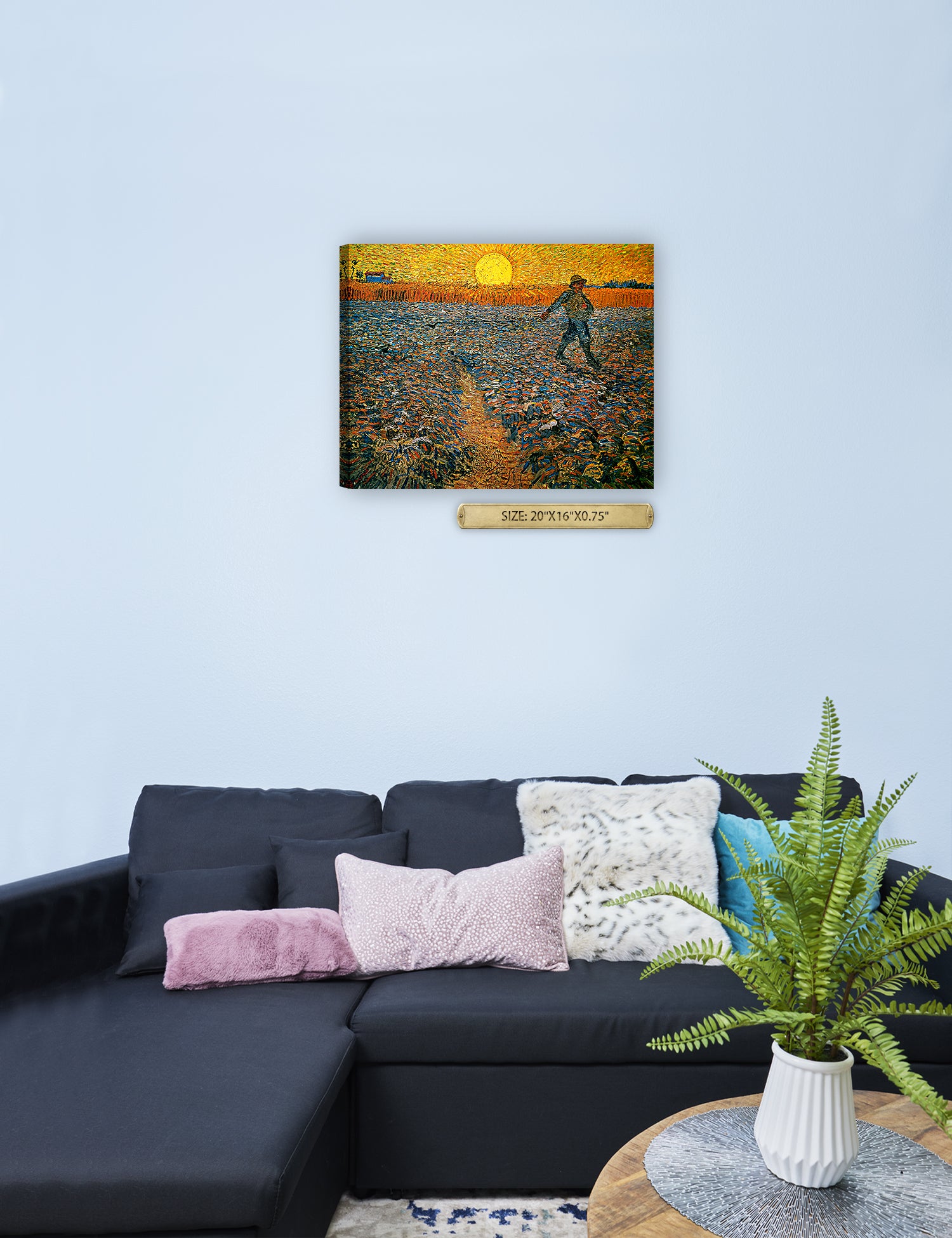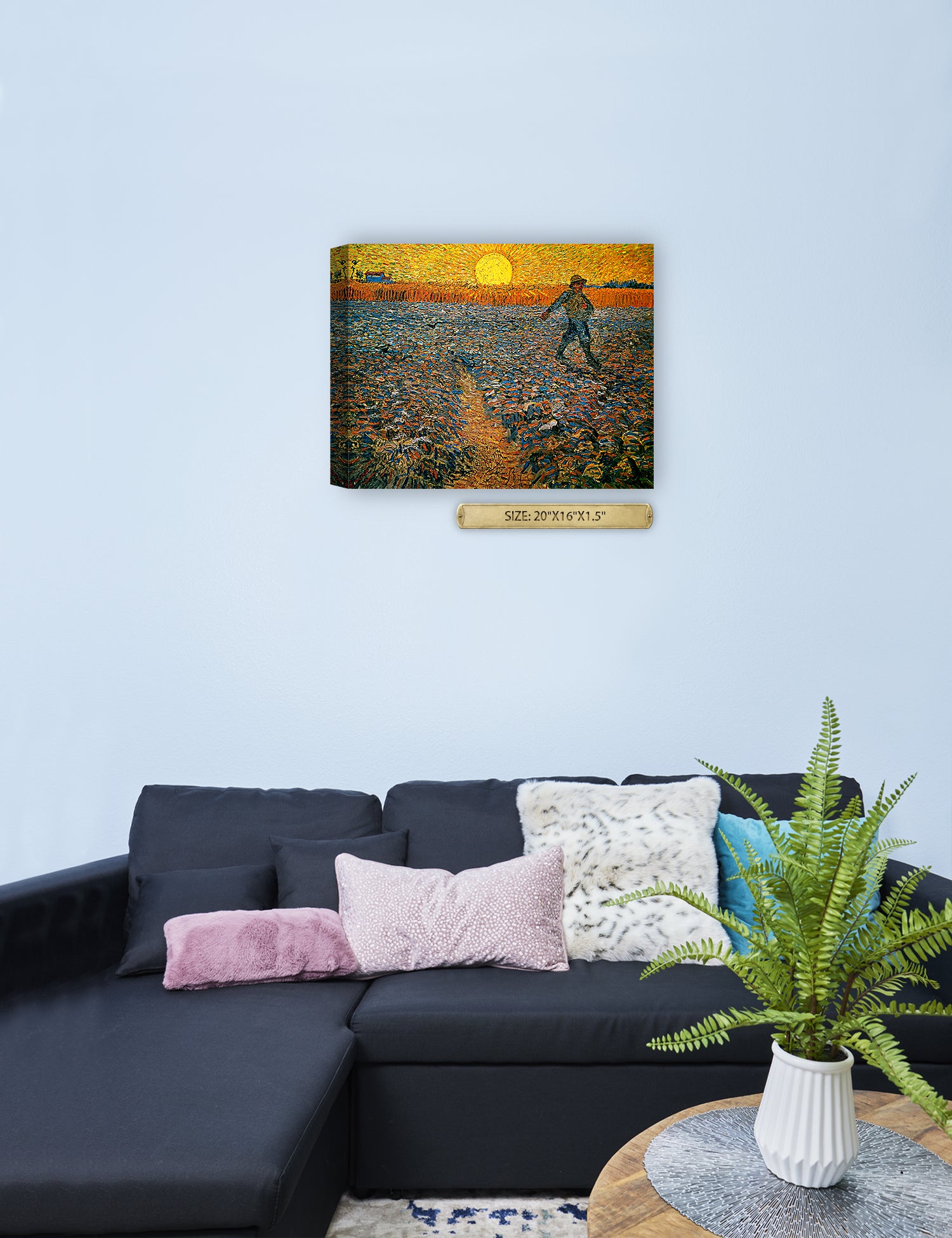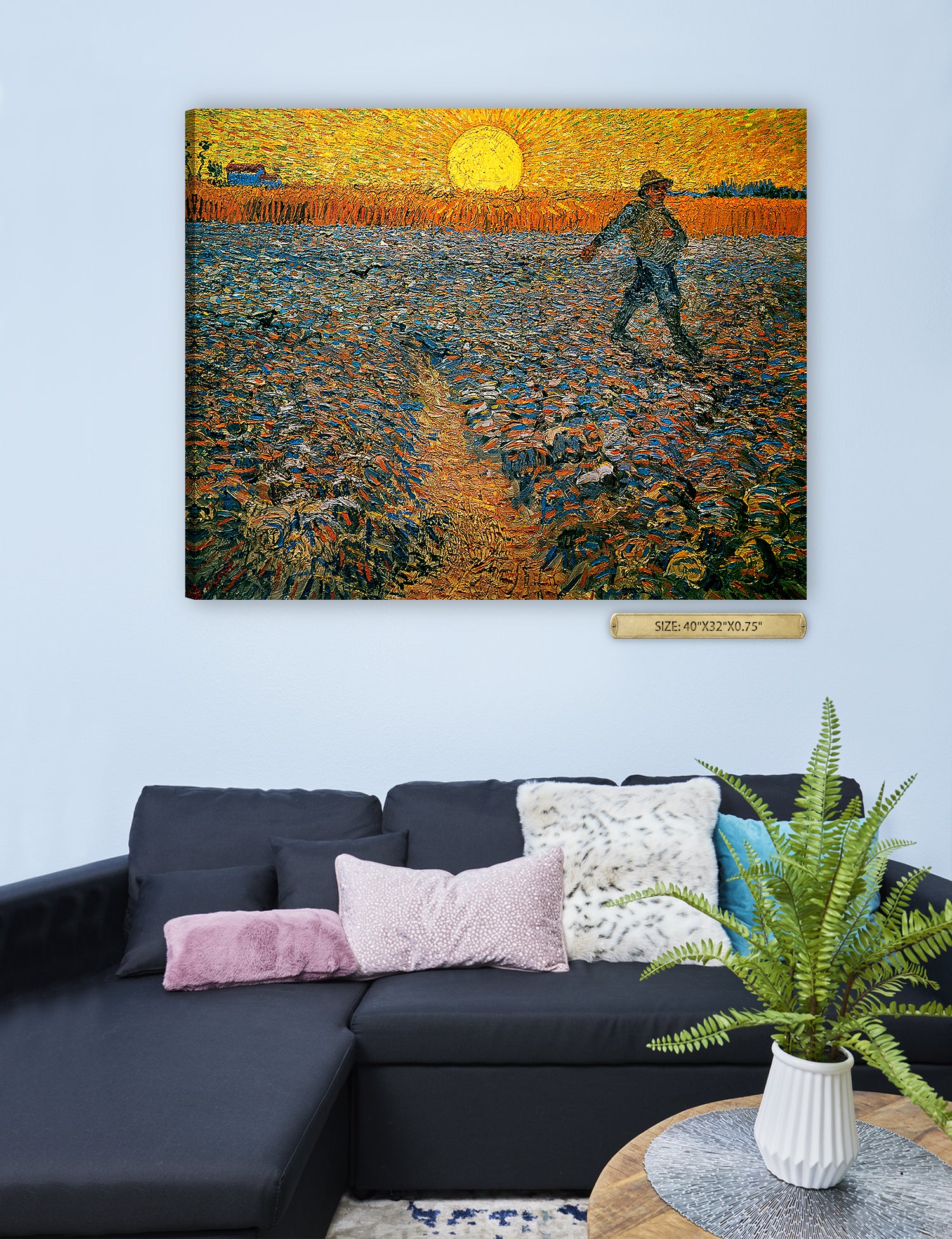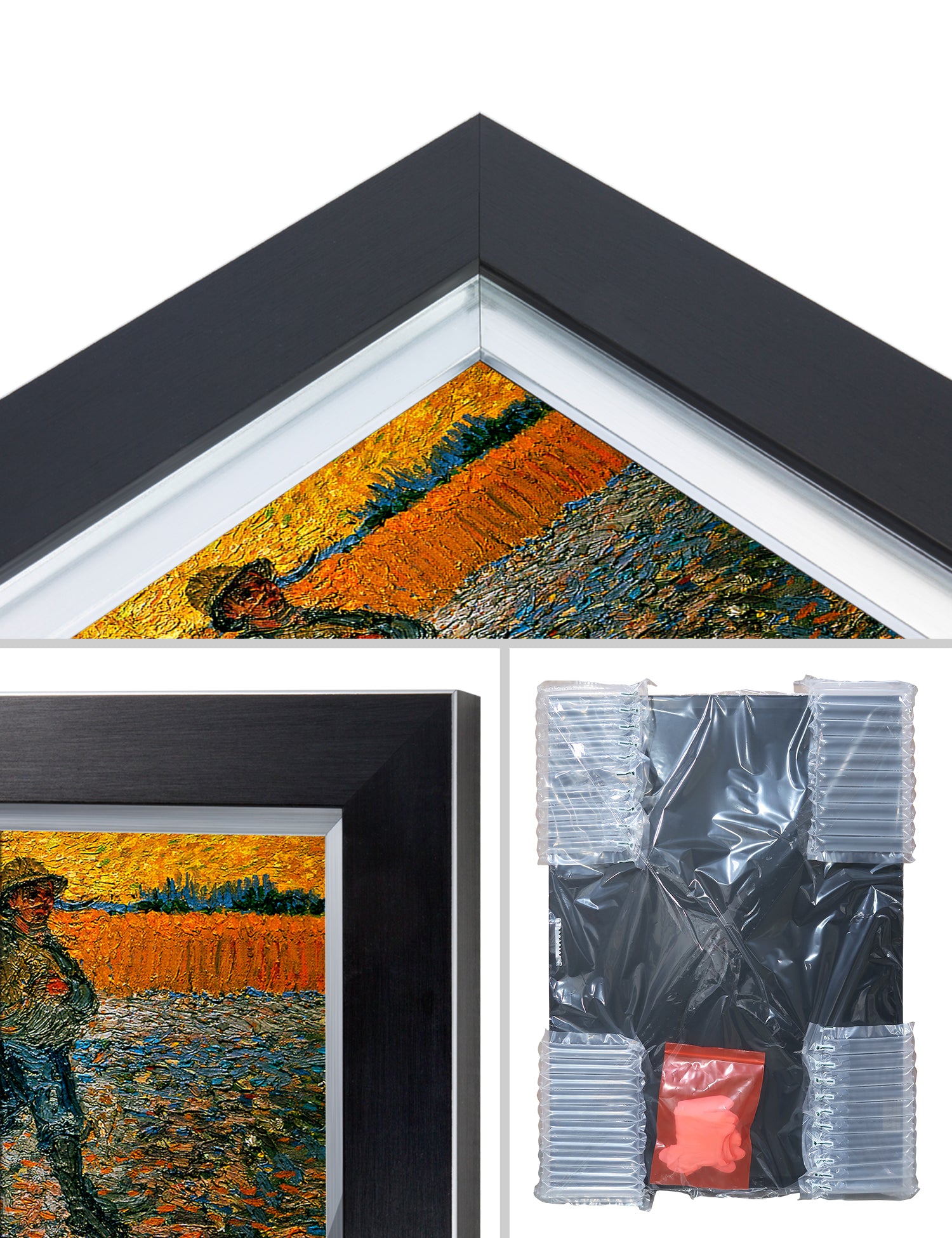 Van Gogh’s example for this painting is The sower from 1850 by French painter Jean-François Millet, whom he admires greatly. He makes dozens of drawings after his great example, but in Arles he wants to paint a new, ‘modern’ version. Not dark, grey and without much colour, like Millet, but with radiant colours and sharp contrasts.