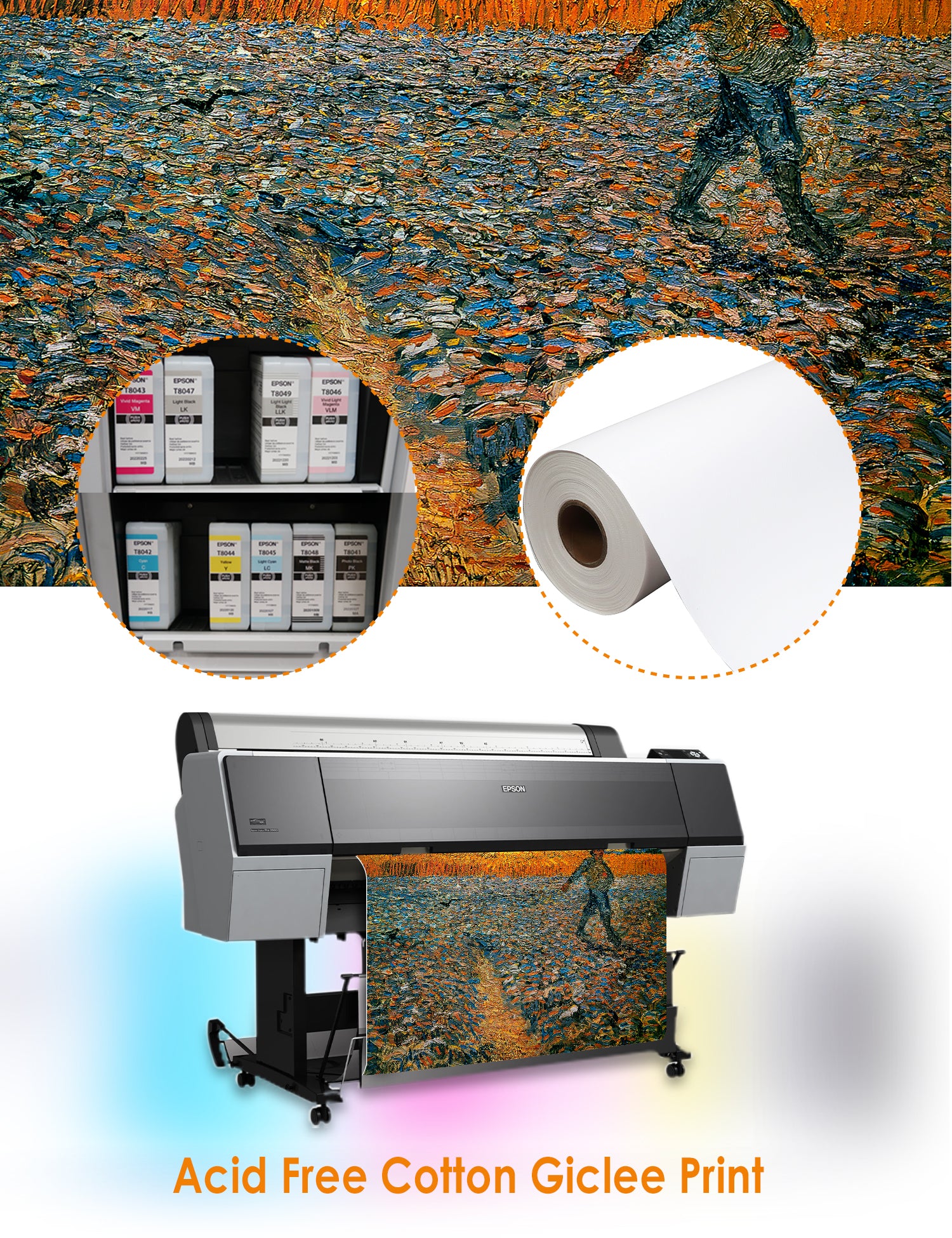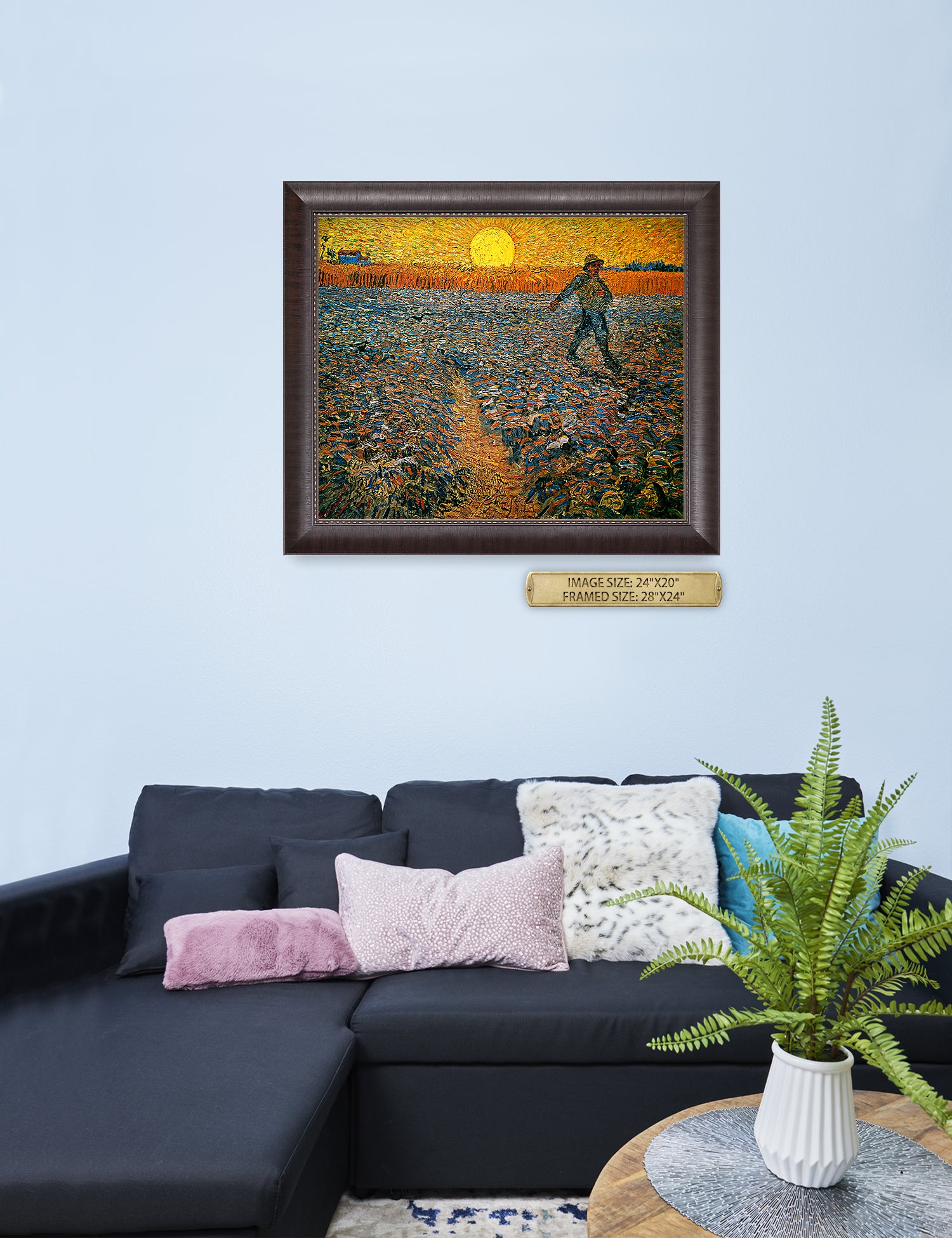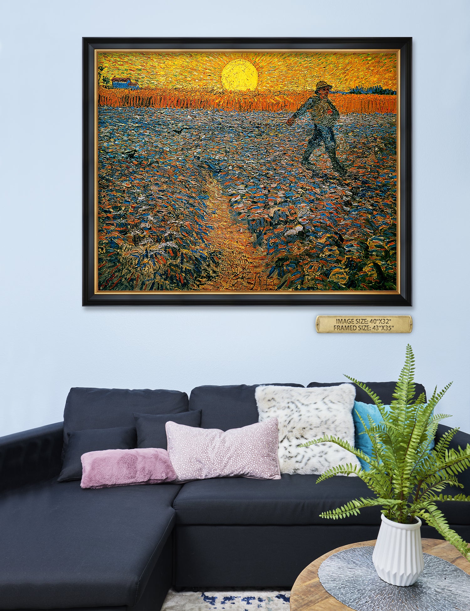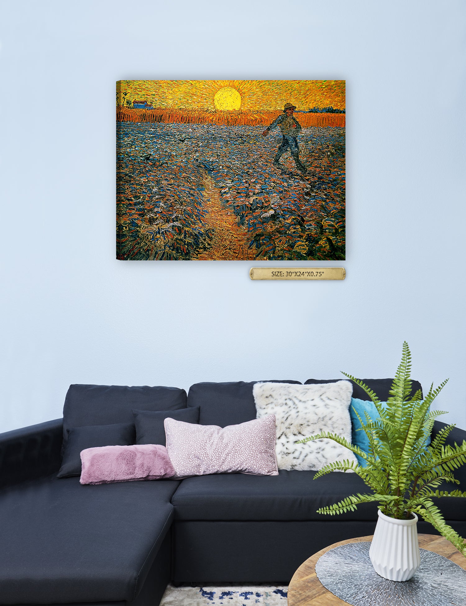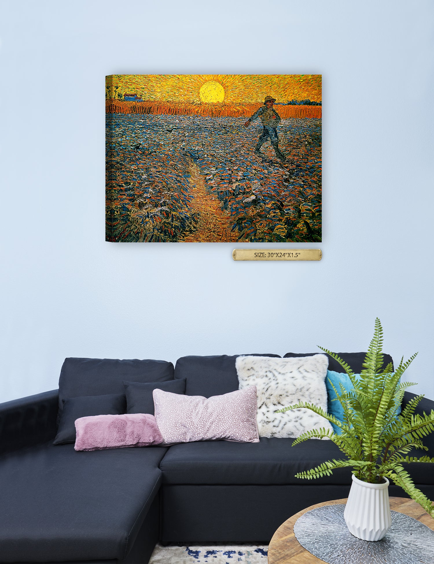 Van Gogh’s example for this painting is The sower from 1850 by French painter Jean-François Millet, whom he admires greatly. He makes dozens of drawings after his great example, but in Arles he wants to paint a new, ‘modern’ version. Not dark, grey and without much colour, like Millet, but with radiant colours and sharp contrasts.