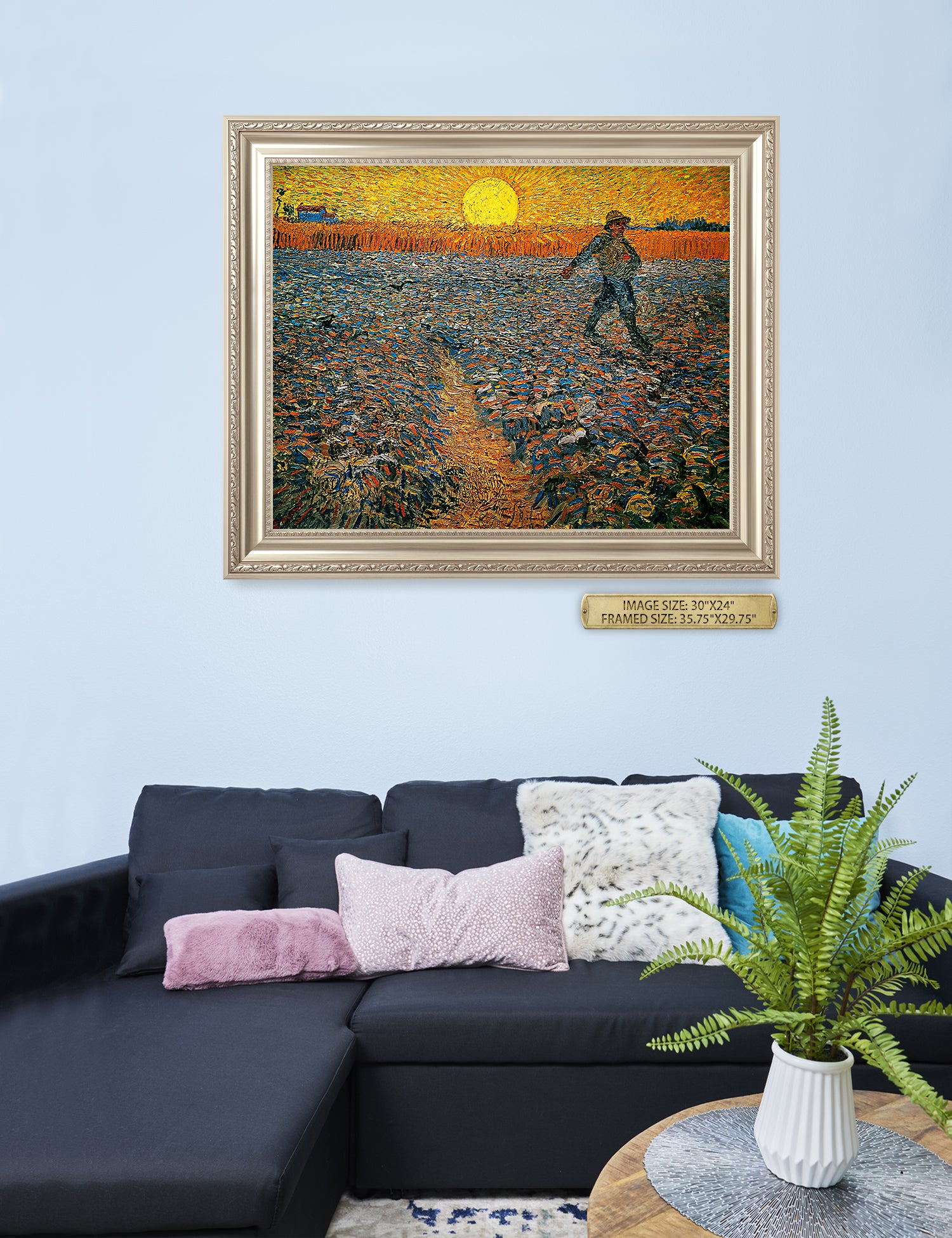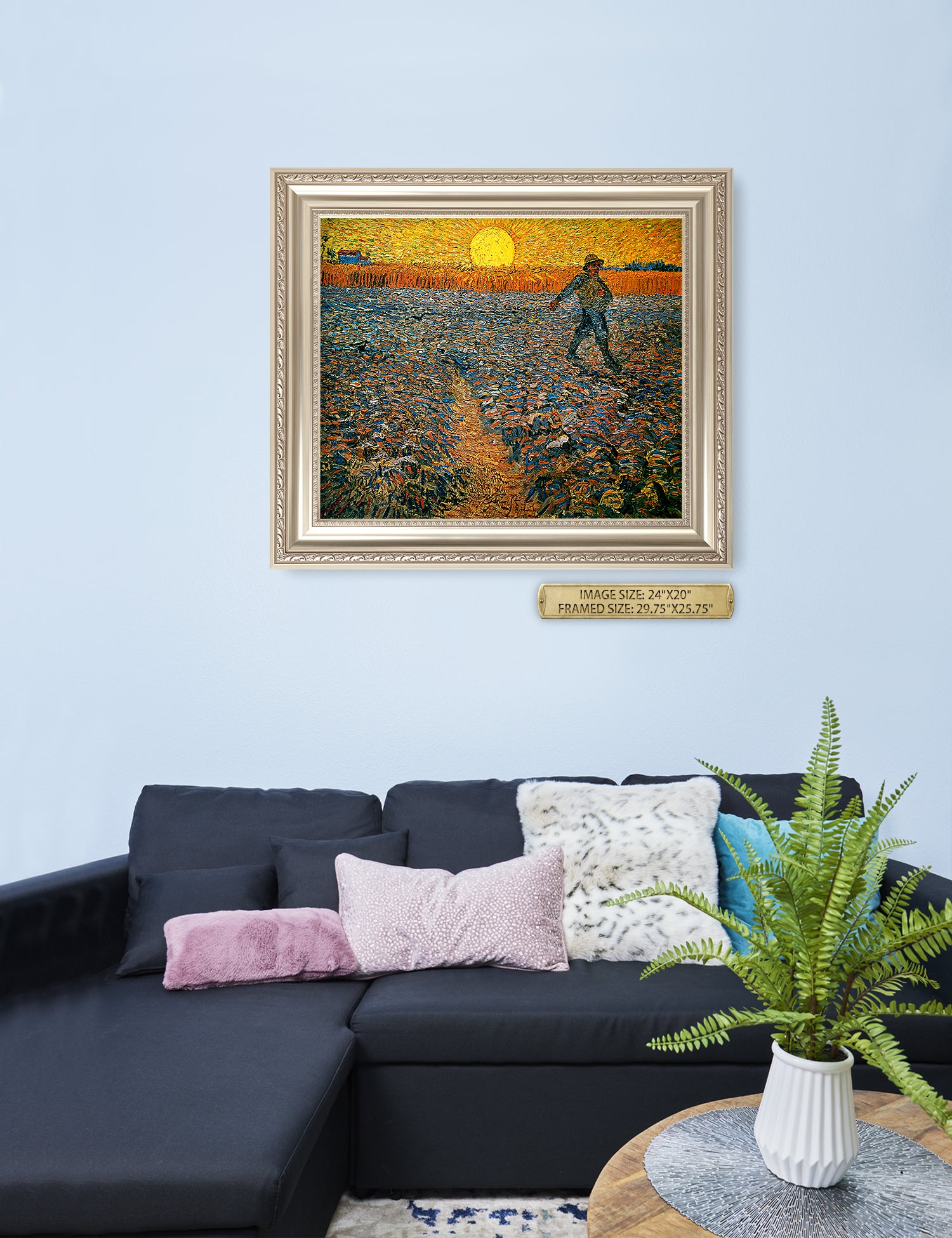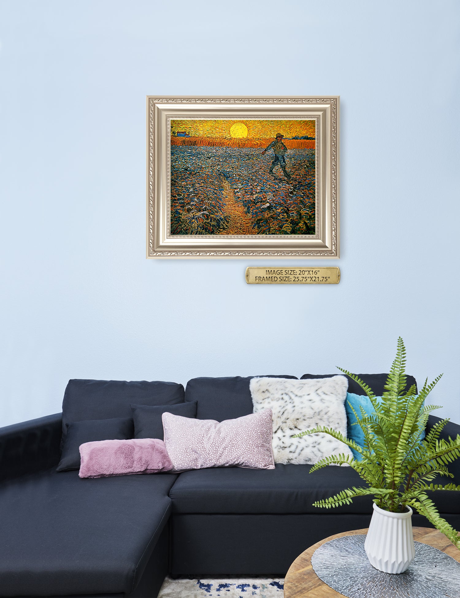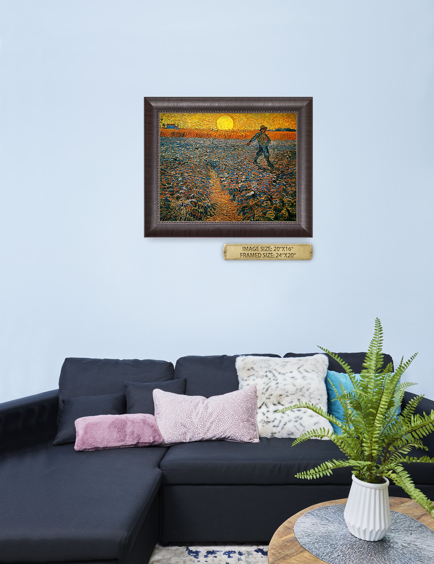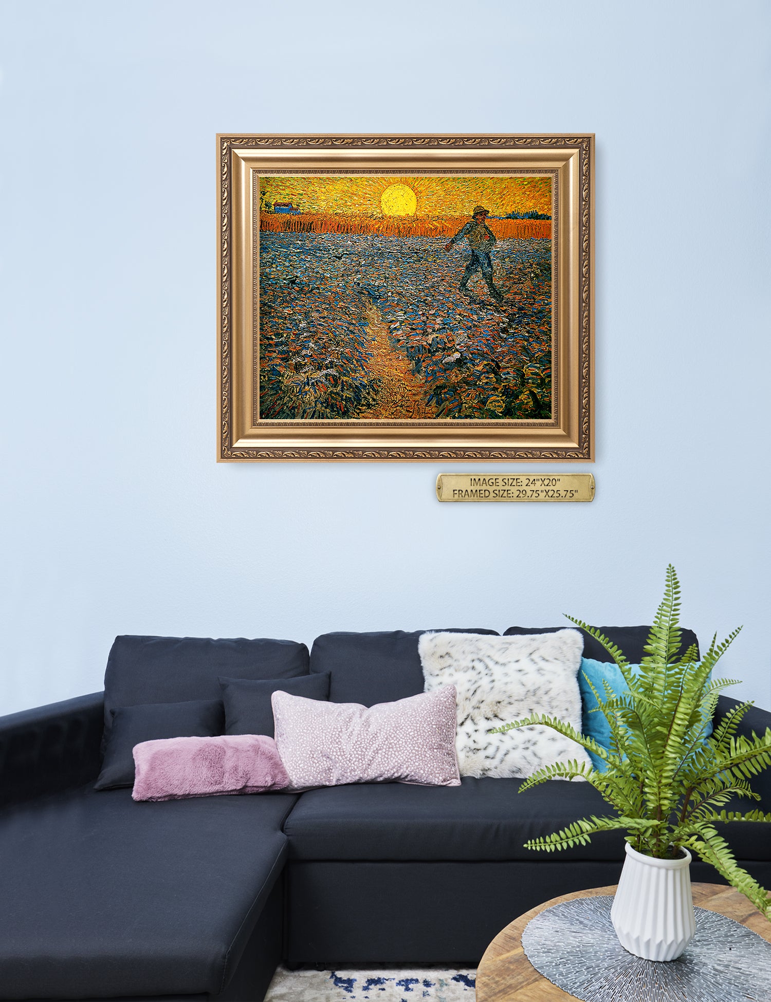 Van Gogh’s example for this painting is The sower from 1850 by French painter Jean-François Millet, whom he admires greatly. He makes dozens of drawings after his great example, but in Arles he wants to paint a new, ‘modern’ version. Not dark, grey and without much colour, like Millet, but with radiant colours and sharp contrasts.