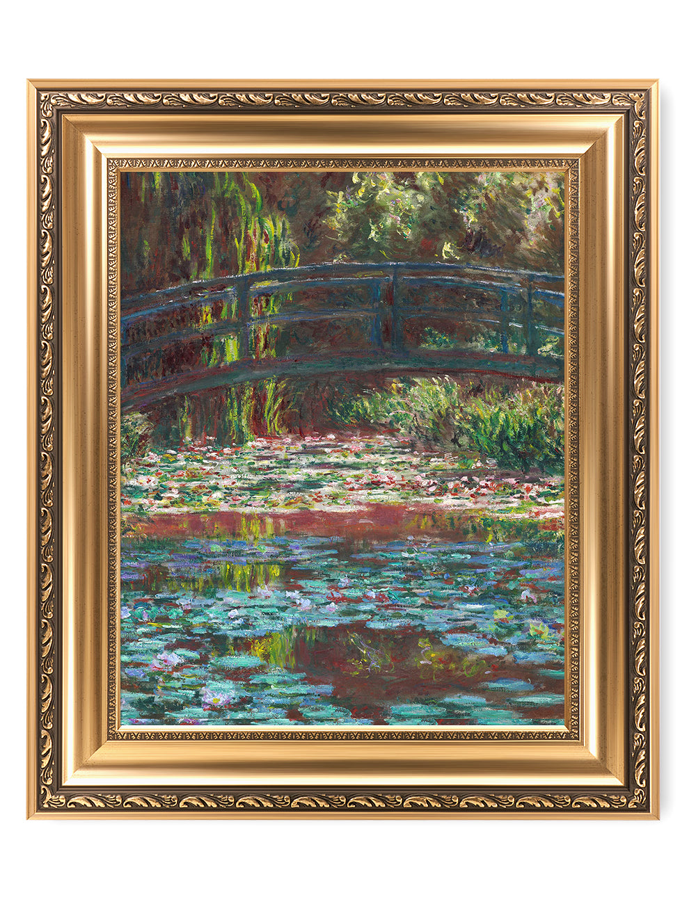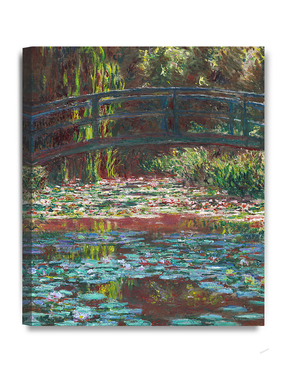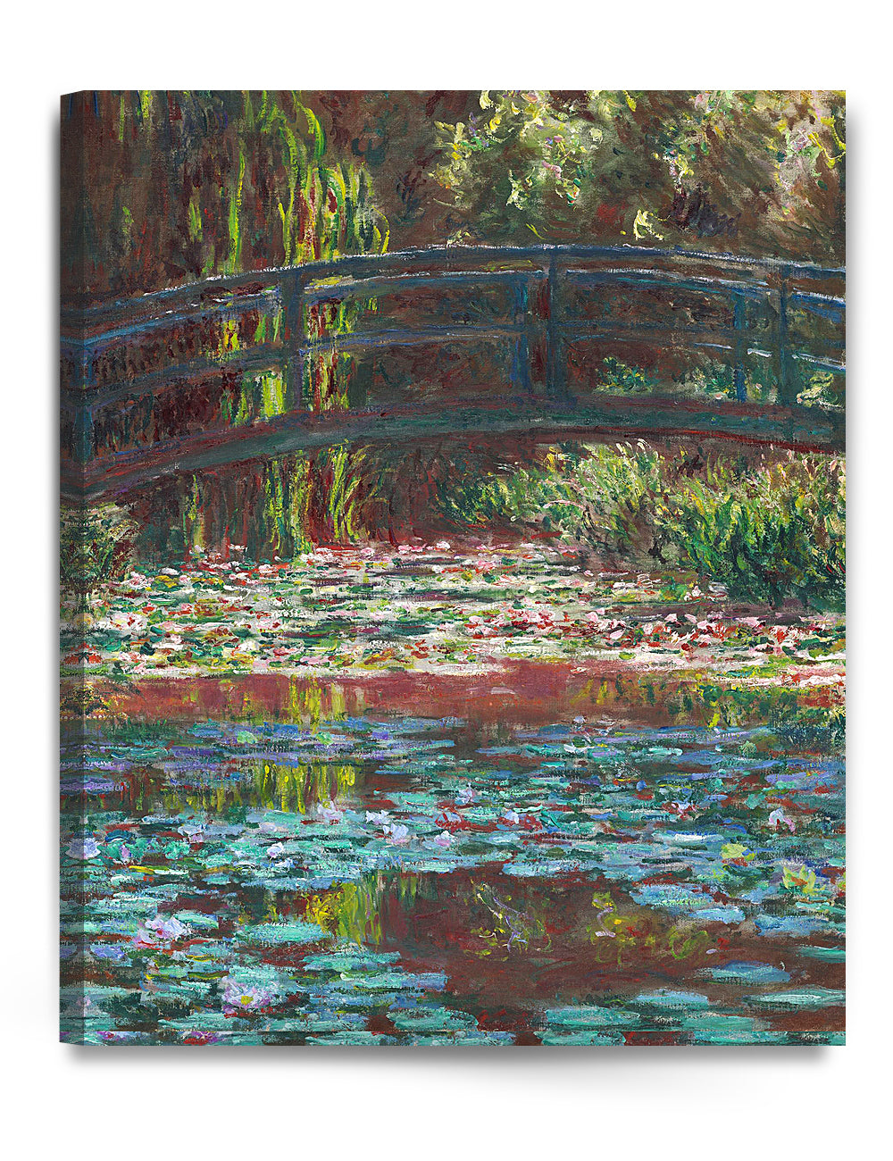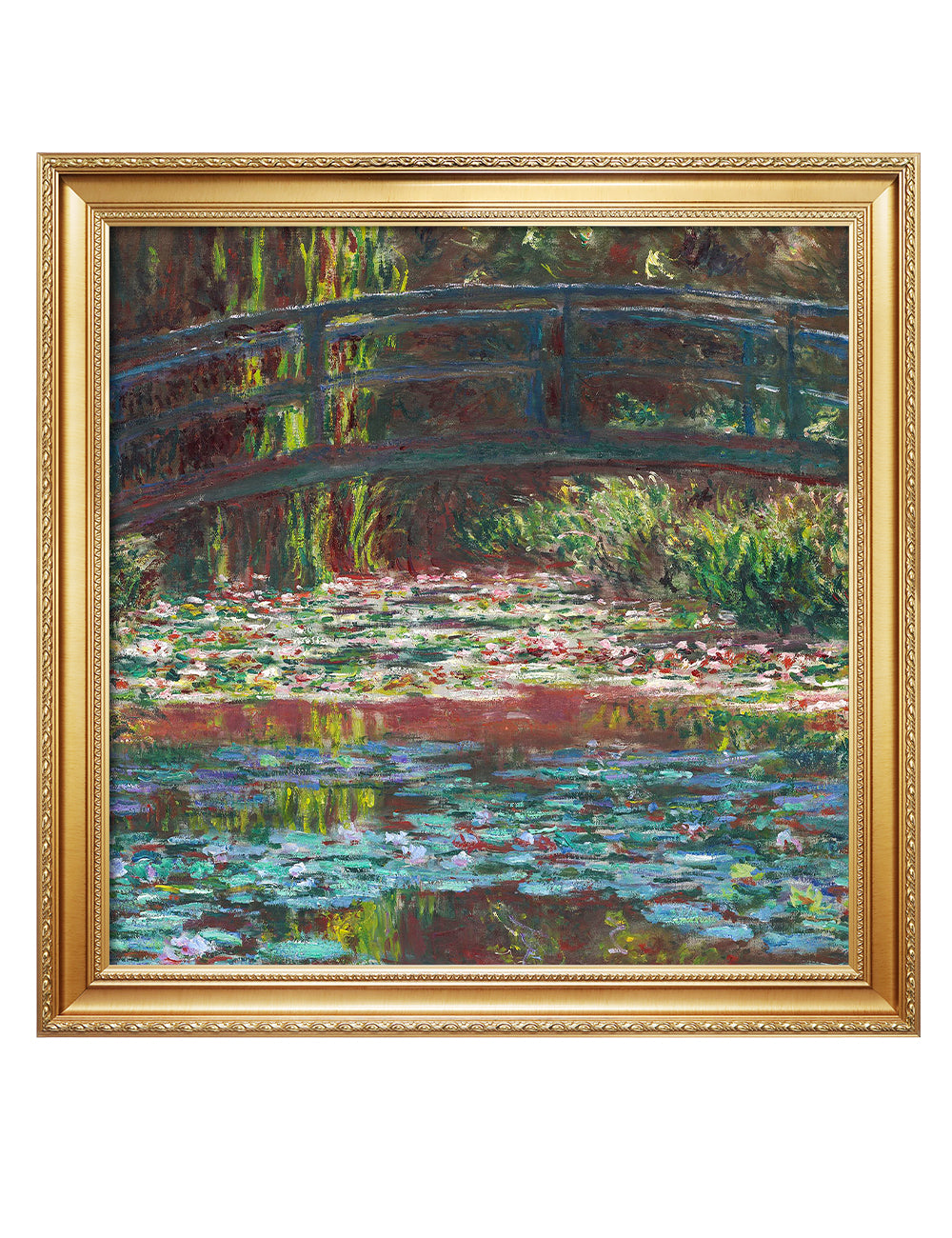 The Bridge over the Water Lily Pond (1900), by Claude Monet. After he purchased a property at Giverny in 1893, Monet transformed the soft and wet land behind his home into a pond, and he built a Japanese-style wood bridge. The artist produced a series of sensational impressionist paintings on water lilies and with many designs that he painted during 1899 to 1900s