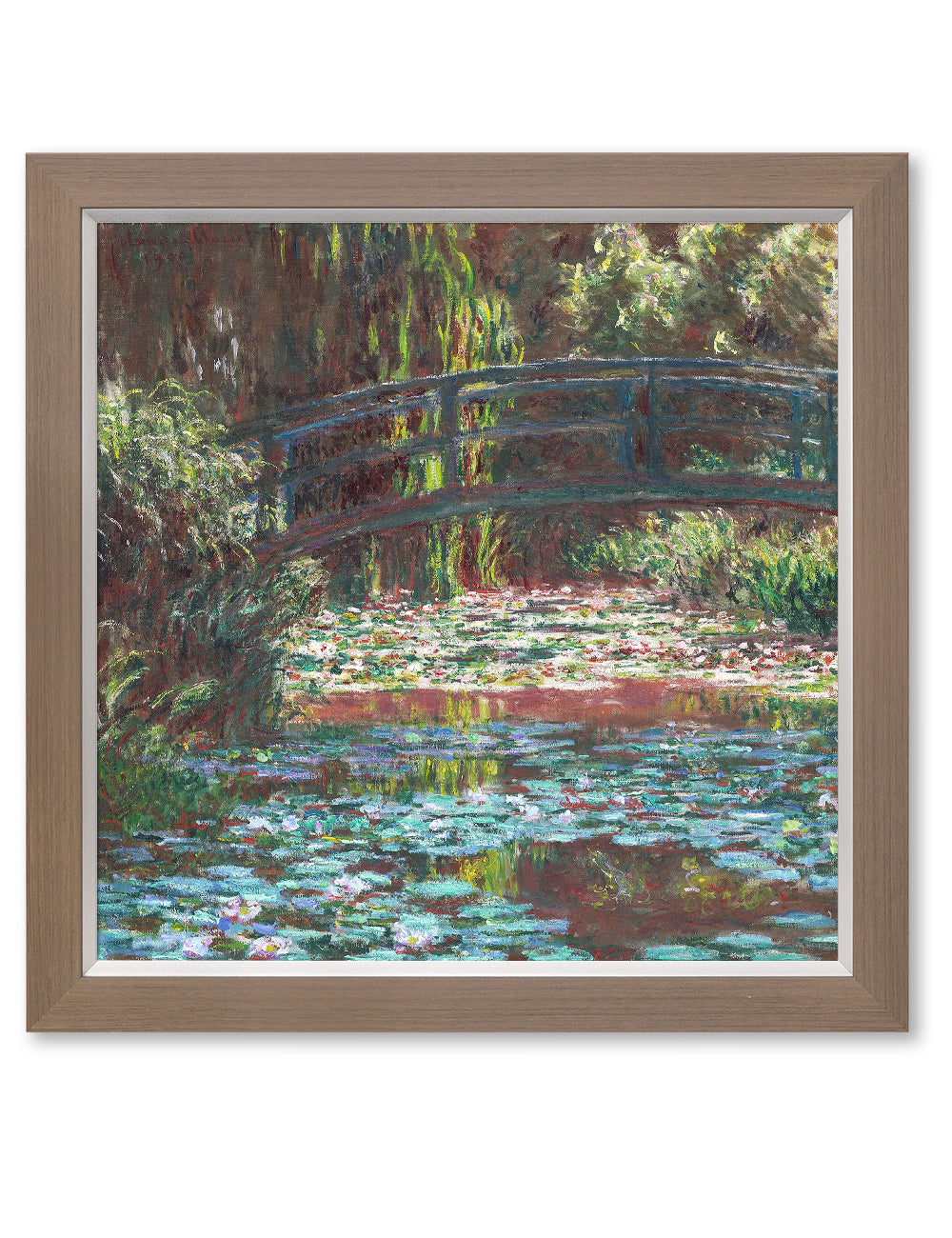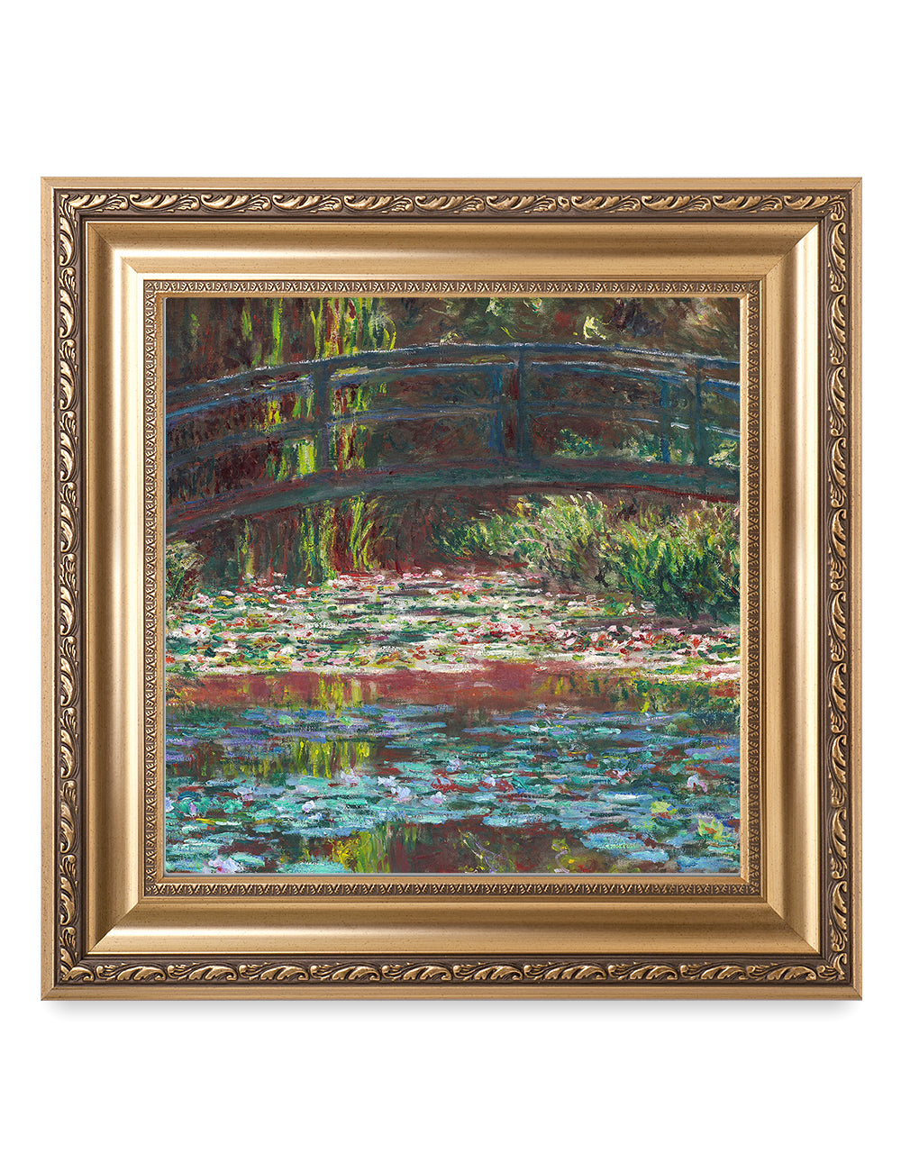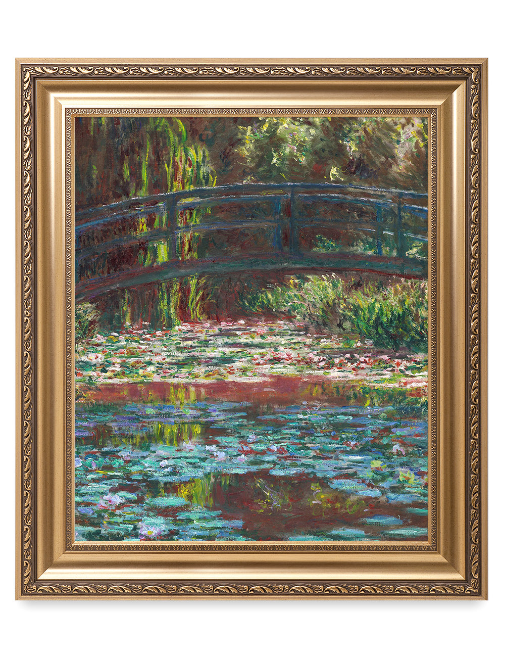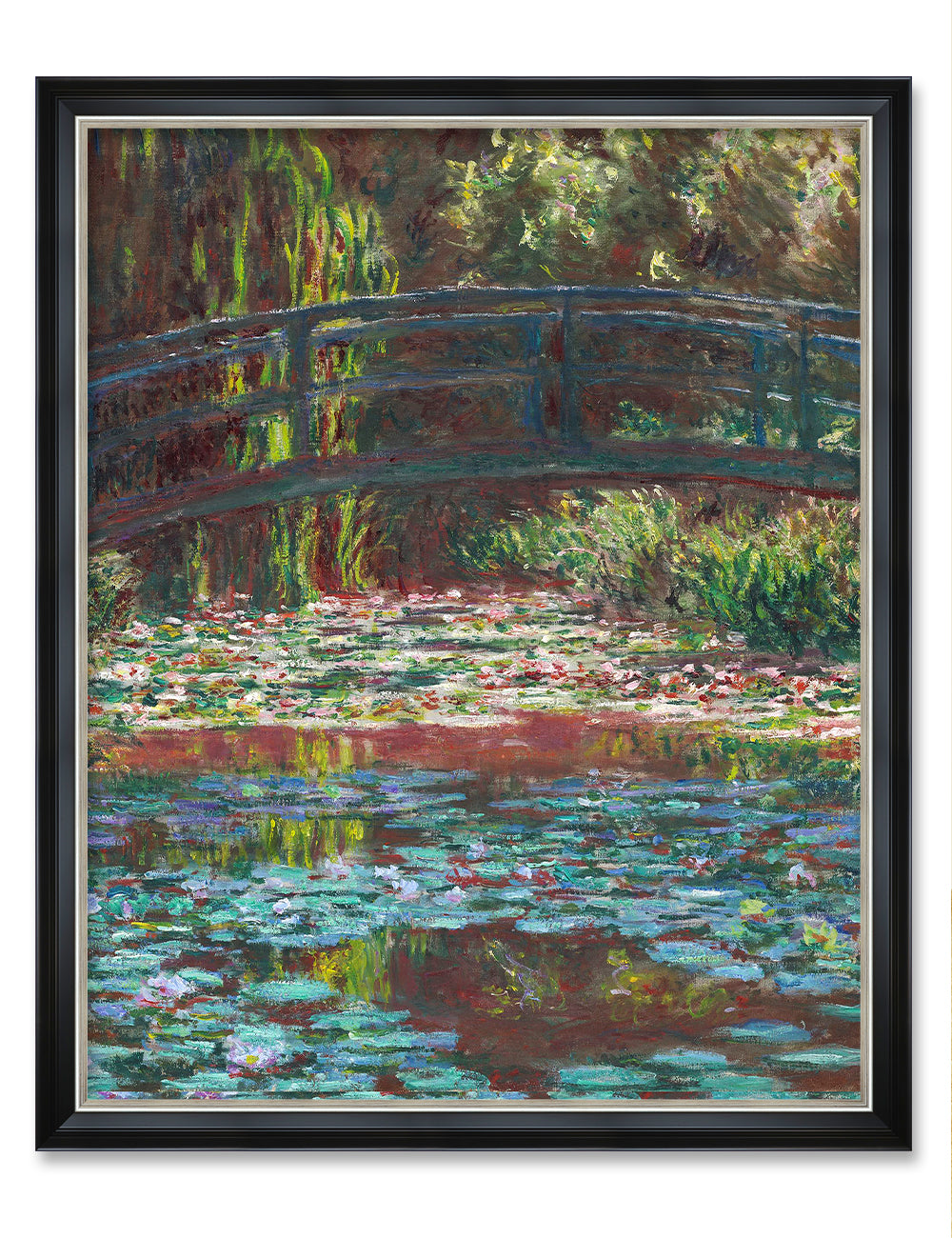 The Bridge over the Water Lily Pond (1900), by Claude Monet. After he purchased a property at Giverny in 1893, Monet transformed the soft and wet land behind his home into a pond, and he built a Japanese-style wood bridge. The artist produced a series of sensational impressionist paintings on water lilies and with many designs that he painted during 1899 to 1900s