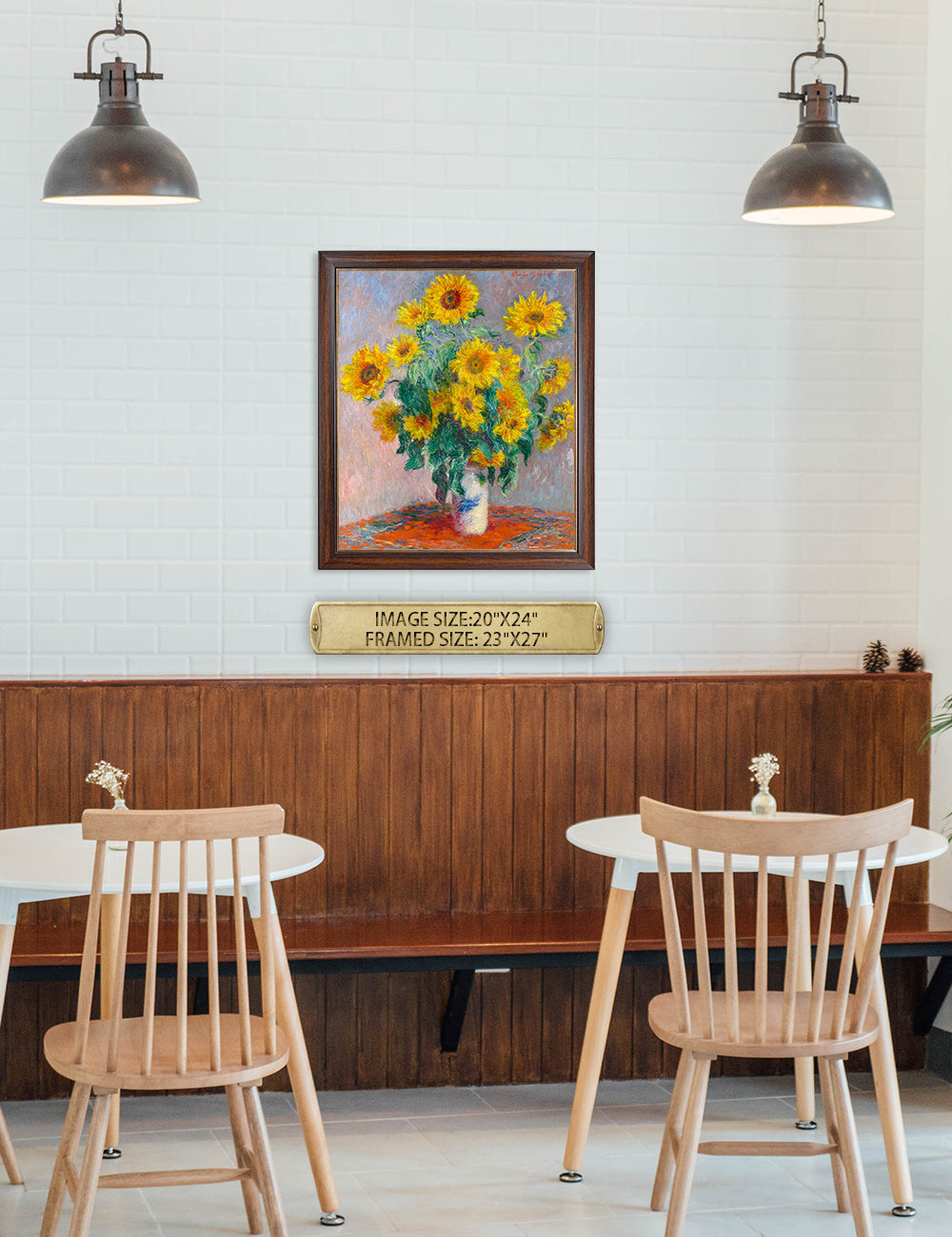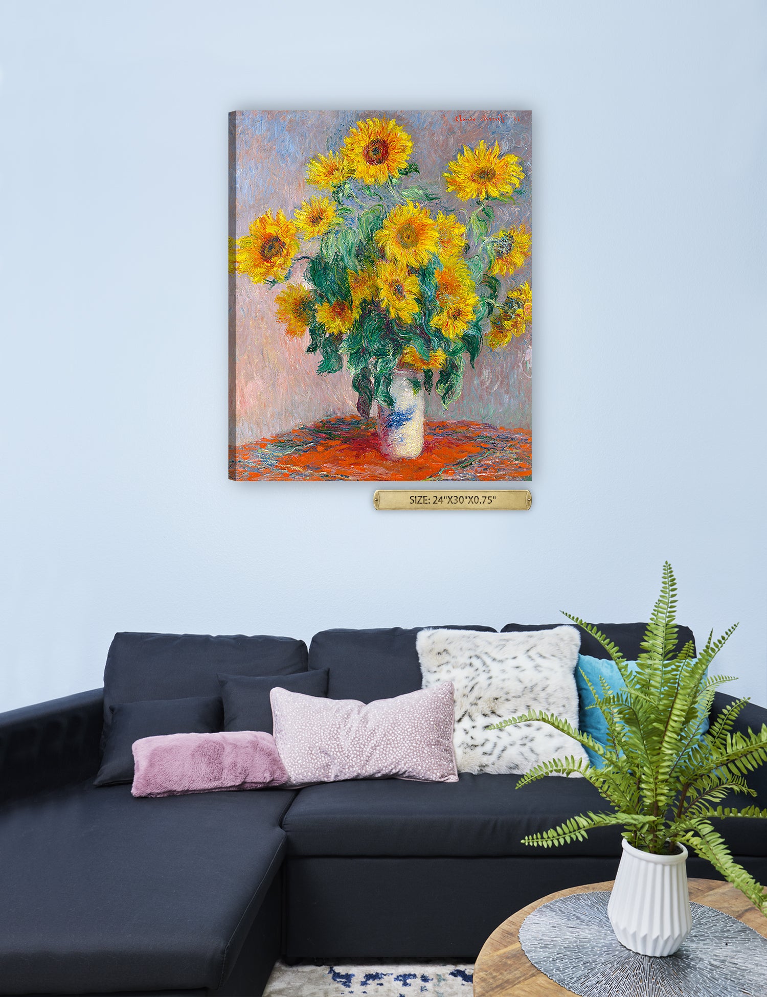 In November 1888, Van Gogh wrote, ‘Gauguin was telling me the other day – that he’d seen a painting by Claude Monet of sunflowers in a large Japanese vase, very fine. But he likes mine better. I’m not of that opinion.’ Critics had earlier praised the ‘brio and daring’ of Monet’s technique when he showed this still life. The painting was depicted sunflowers that grew along the pathway to his garden at Vetheuil, at the 1882 Impressionist exhibition.?
