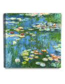 Monet began work in 1883 in the small village of Giverny down stream on the Seine from Paris. Then in 1893 he bought the land in front of his home and built a Japanese style garden in the space. Monet used a small stream that ran through his property to build a huge pond which he filled with water lilies and crossed with a humpbacked bridge. He lined the banks with willows and shrubbery and retired to this watery realm isolated from the outside world to create his final series, ‘The Water Lilies’. He built a glasswalled studio on the side of the garden and set up a wheeled easel that he could freely roll around the room. There he created painting after painting of the changing images of the pond, its water lilies and the reflecting light at all hours of morning, day and evening. In different works of the series he included images of the willows on the shore, the humpback bridge and the evening sky. But he finally concentrated solely on the pond itself. He filled the entire surface of the work with an image of the pond, giving the viewer the strong impression of standing in the center of the pond. The brushstrokes and pigments depicting flowers and water differ considerably from early Impressionist techniques; at times they reach the passionate intensity of Expressionism in their evocation of the beauty of the water’s surface. This work is one of the finest of these late ‘Water Lilies’ paintings. (Source: Masterpieces of the National Museum of Western Art, Tokyo, 2009, cat. no.78)